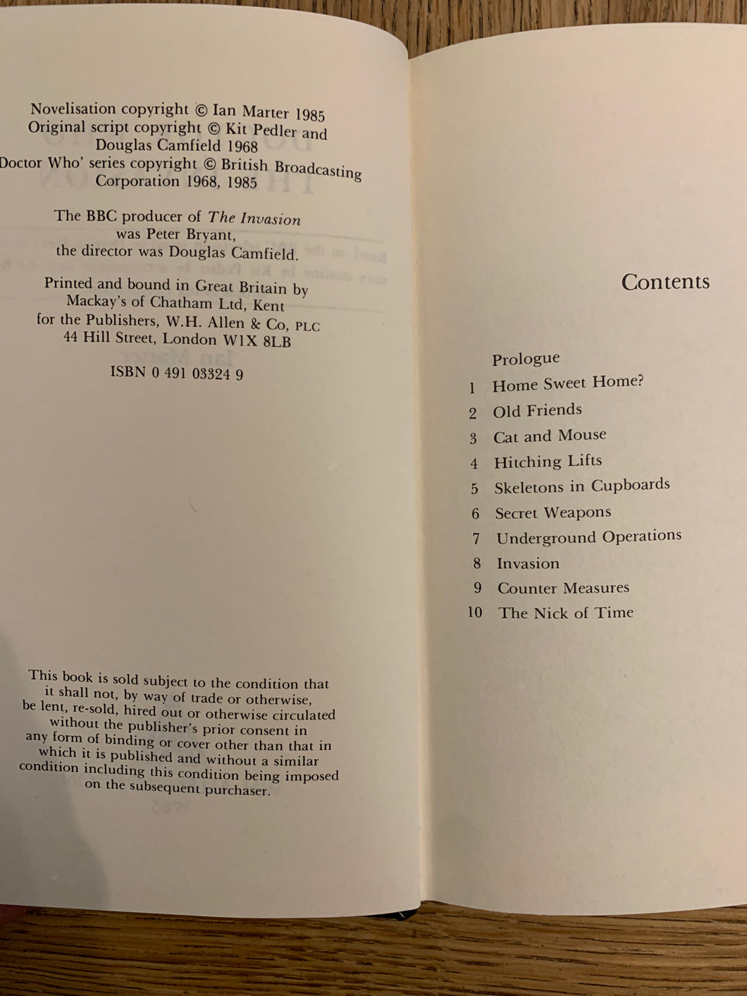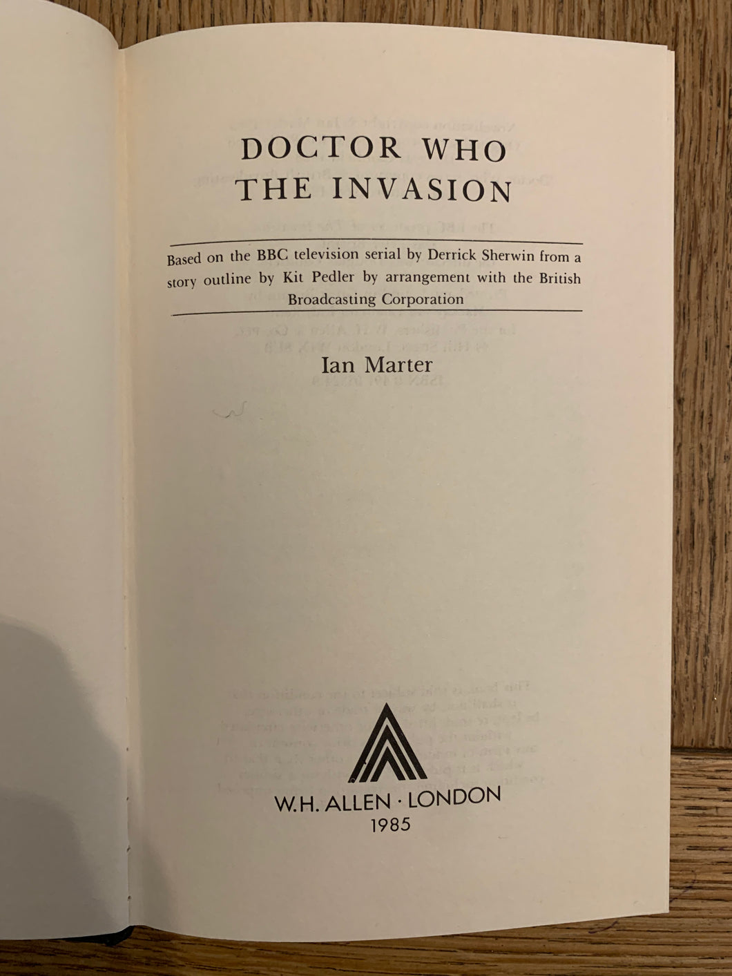 'Doctor Who - The Invasion' by Ian Marter. Published by WH Allen. 1985. UK 1st edition. Laminated pictorial boards. No dust wrapper as issued.