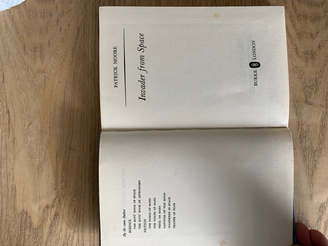‘Invader From Space’ by Patrick Moore. Published by Burke. September 1963. UK 1st edition.