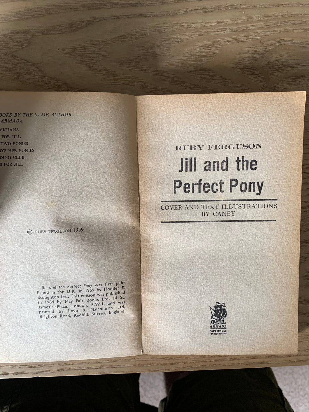 ‘Jill and the Perfect Pony’ by Ruby Ferguson. Illustrated by Caney. Published by May Fair Books. Armada Paperbacks. 1964. UK 1st edition thus. Card Covers.