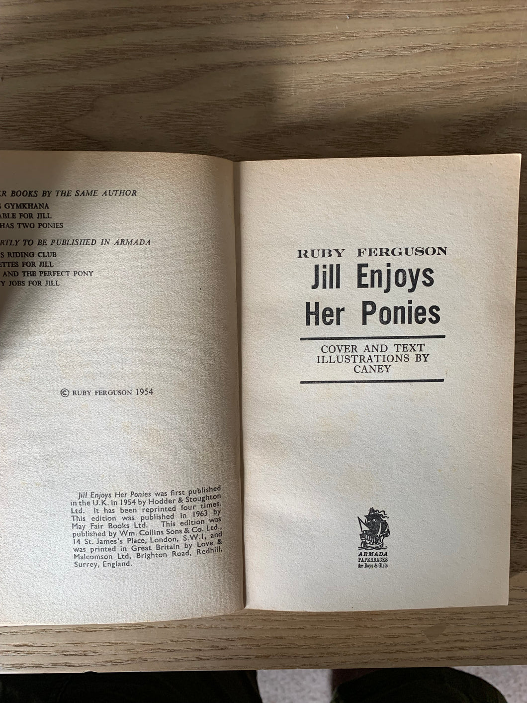 ‘Jill Enjoys Her Ponies’ by Ruby Ferguson. Illustrated by Caney. Published by William Collins. Armada Paperbacks. Reprint. Card Covers.