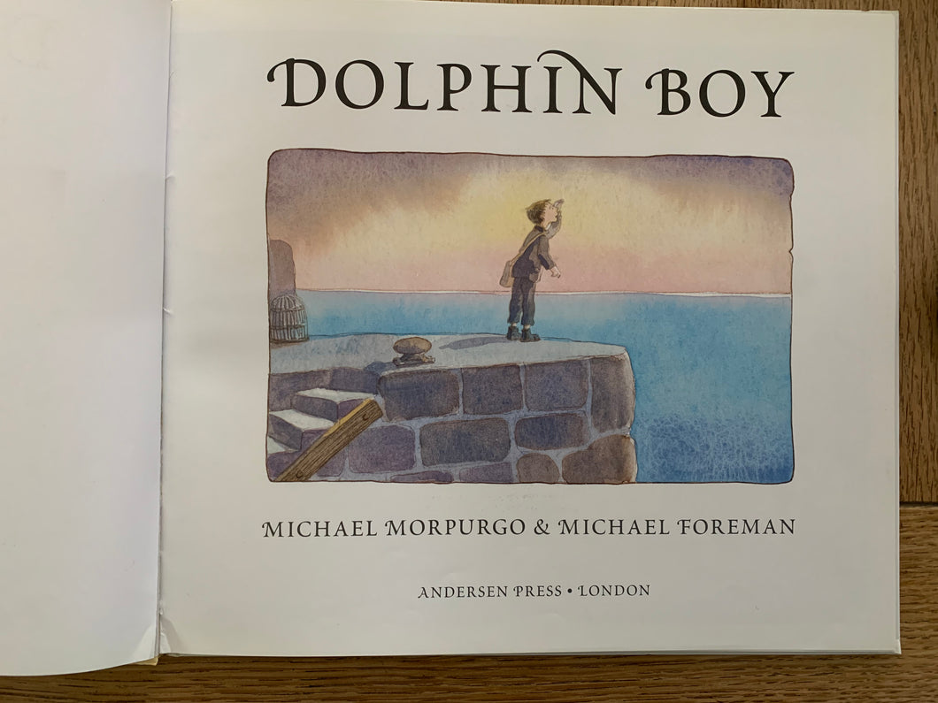 'Dolphin Boy’ by Michael Morpurgo. Illustrated by Michael Foreman. Published by Anderson Press. 2004. UK 1st edition. Laminated pictorial boards with no dust wrapper as issued.