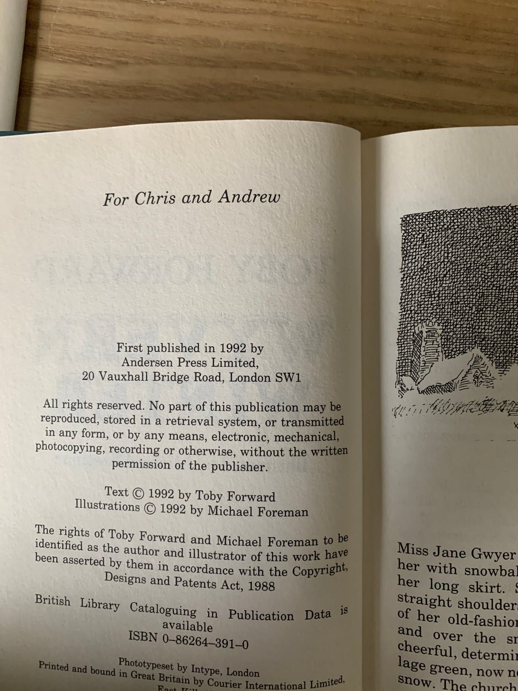 ‘Wyvern Winter’ by Toby Forward. Illustrated by Michael Foreman. Published by Anderson Press. 1994. UK 1st edition. Laminated pictorial boards. No dust wrapper as issue.