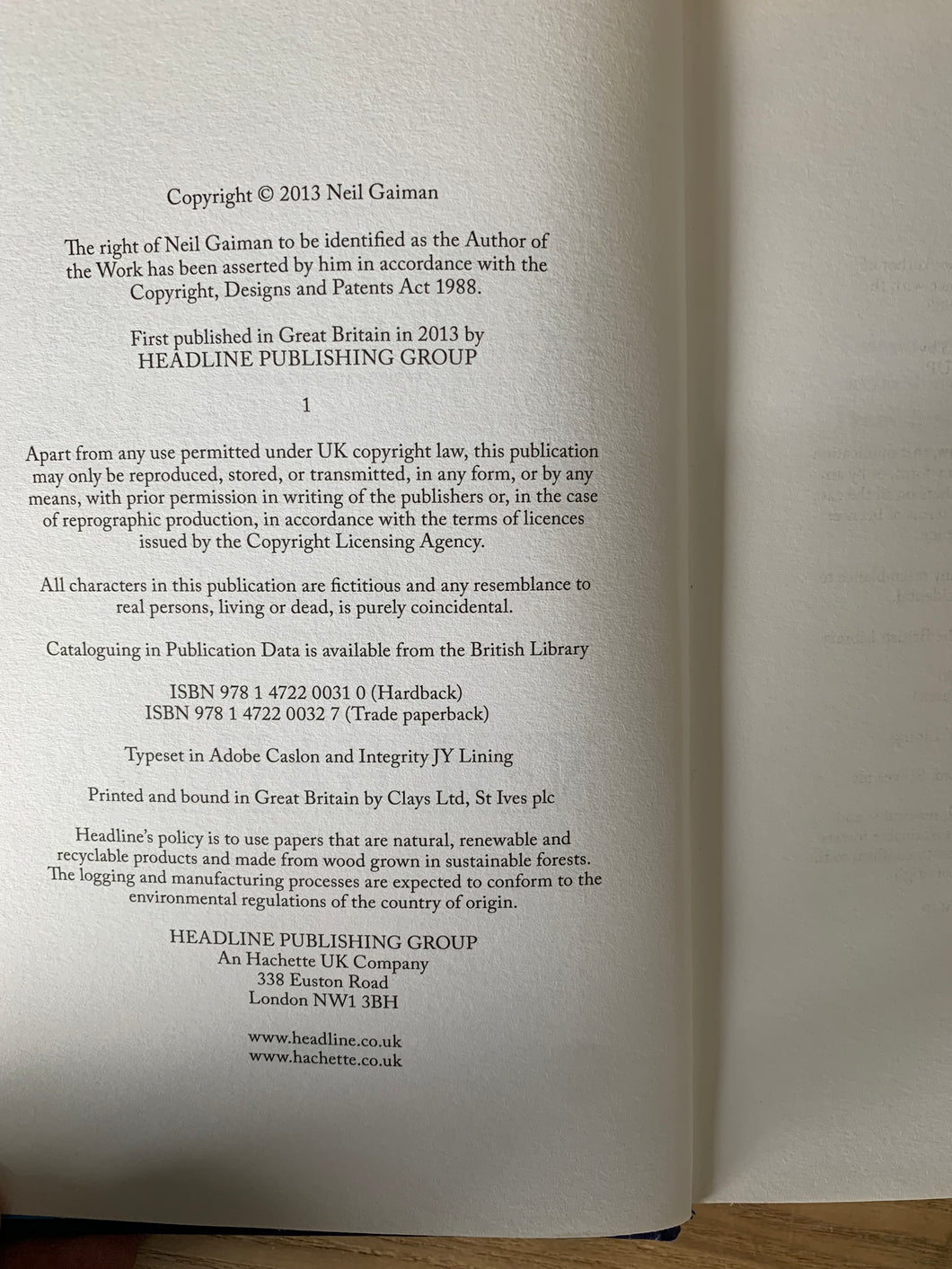 'The Ocean at the End of the Lane' by Neil Gaiman. Published by Headline. 2013. UK 1st edition.