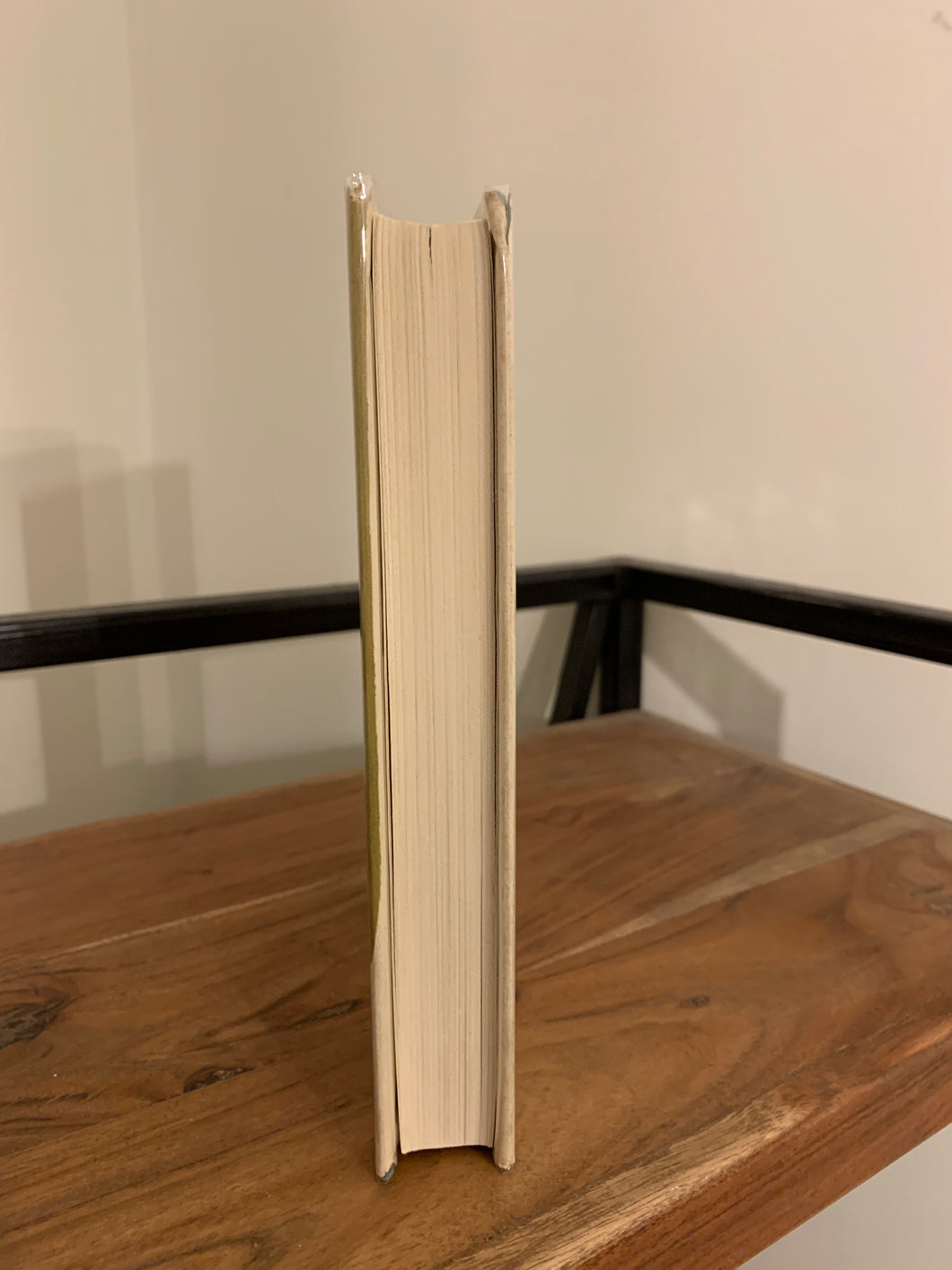The dust wrapper is in very good condition and is not price clipped. There are tears to the top of the spine, with a small piece missing from the base. There is a single teat to the top edge of the rear cover and bottom edge of the front cover. The wrapper comes in a clear unattached protective cover.