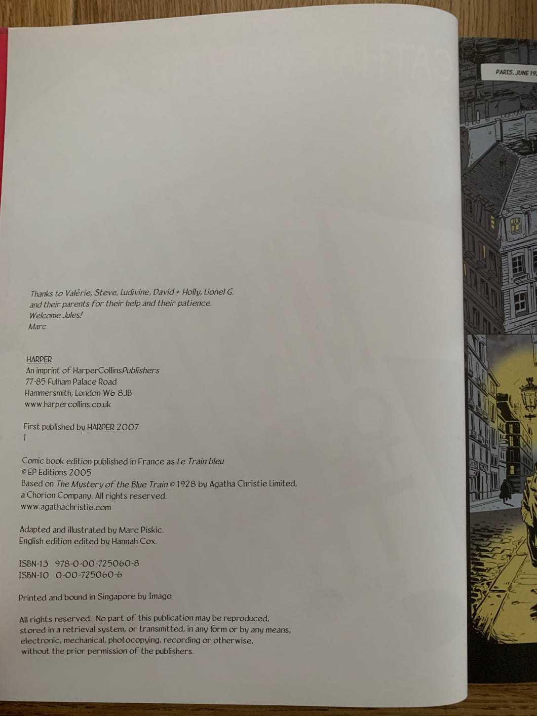 'The Mystery of the Blue Train' by Agatha Christie. Adapted and illustrated by Marc Piskic. Published by Harper. 2007. UK 1st edition. Laminated pictorial boards. No dust wrapper as issued.