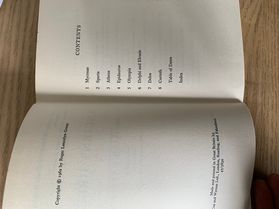 ‘Ancient Greece’ by Roger Lancelyn Green. Published by Weidenfield & Nicolson. 1962. UK 1st edition.
