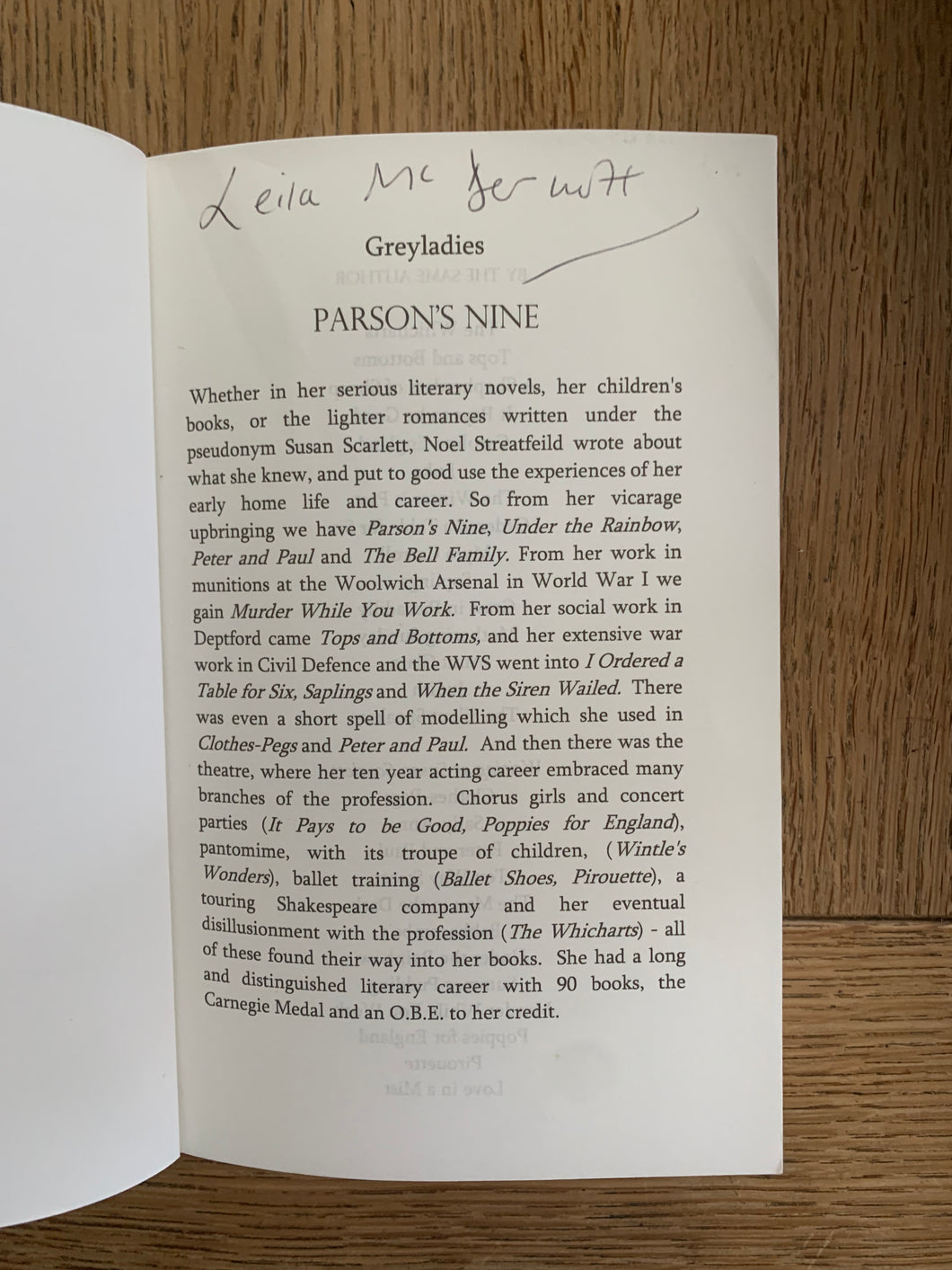 'Parson's Nine' by Noel Streatfeild. Published by Greyladies. 2014. Card covers.