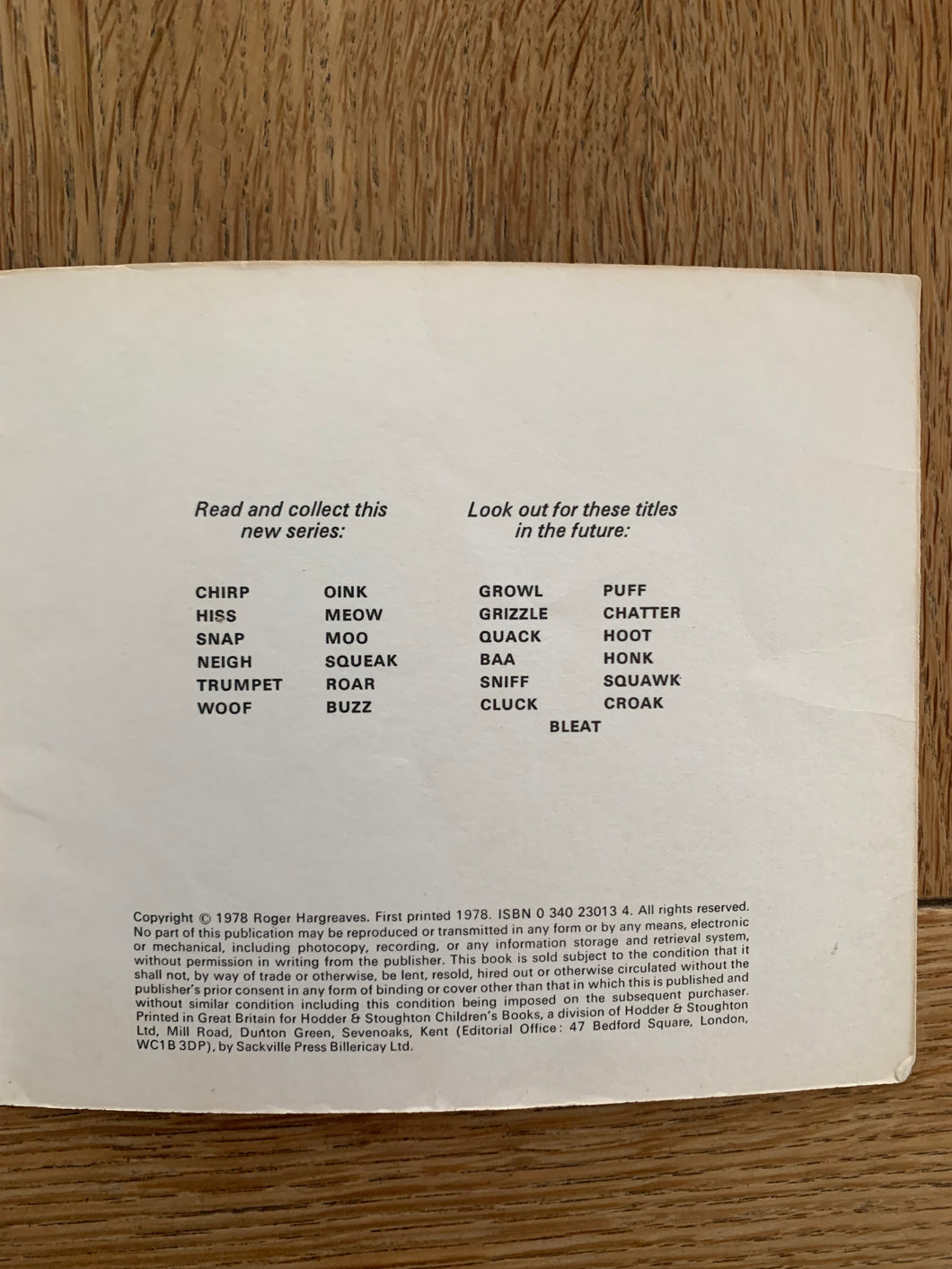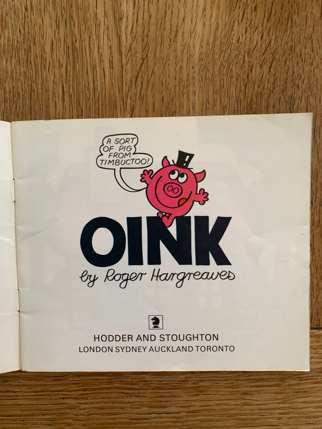 ‘Oink' by written and illustrated by Roger Hargreaves. Published by Hodder and Stoughton. 1978. UK 1st edition. Card covers. No dust wrapper as issued. Small format.