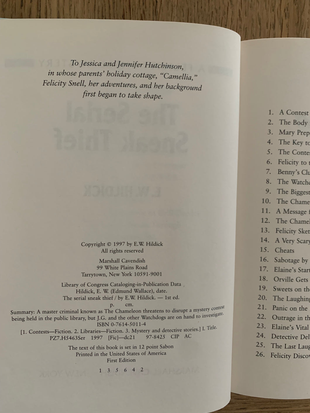 ‘The Serial Sneak Thief’ by E.W. Hildick. Published by Marshall Cavendish. 1997. US 1st edition.