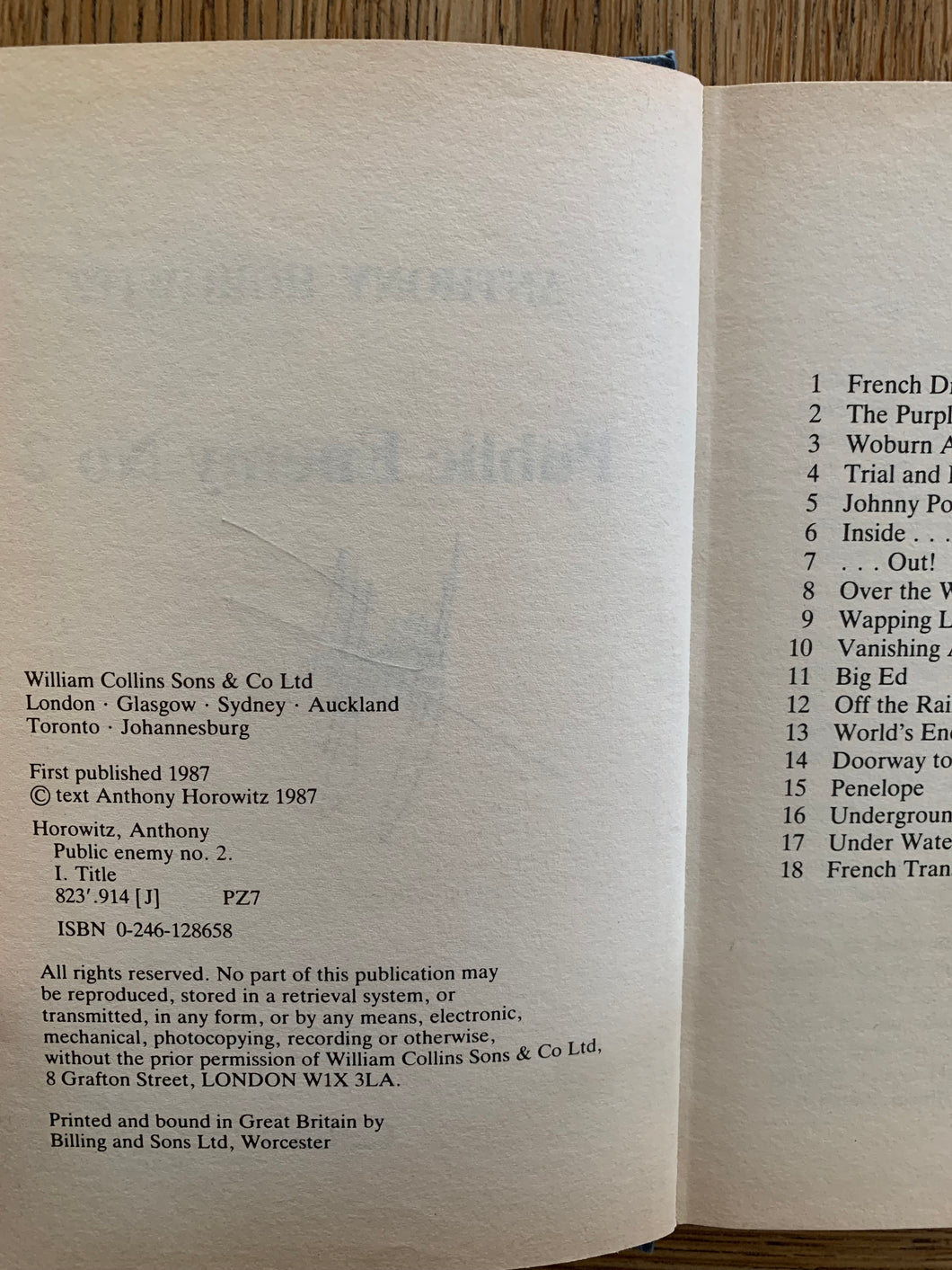 'Public Enemy No 2' by Anthony Horowitz. Published by William Collins. 1987. UK 1st edition.