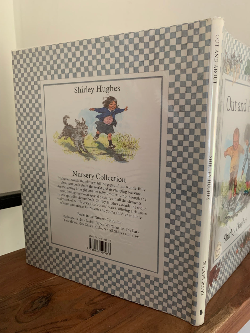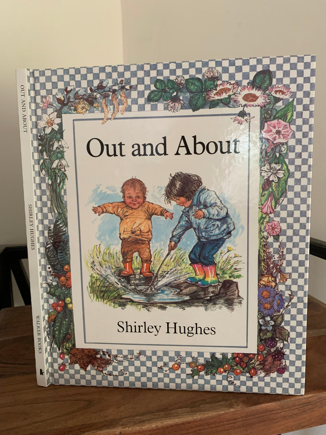 'Out and About' written and illustrated by Shirley Hughes. Published by Walker Books. 1988. UK 1st edition. Laminated pictorial boards with matching dust wrapper.