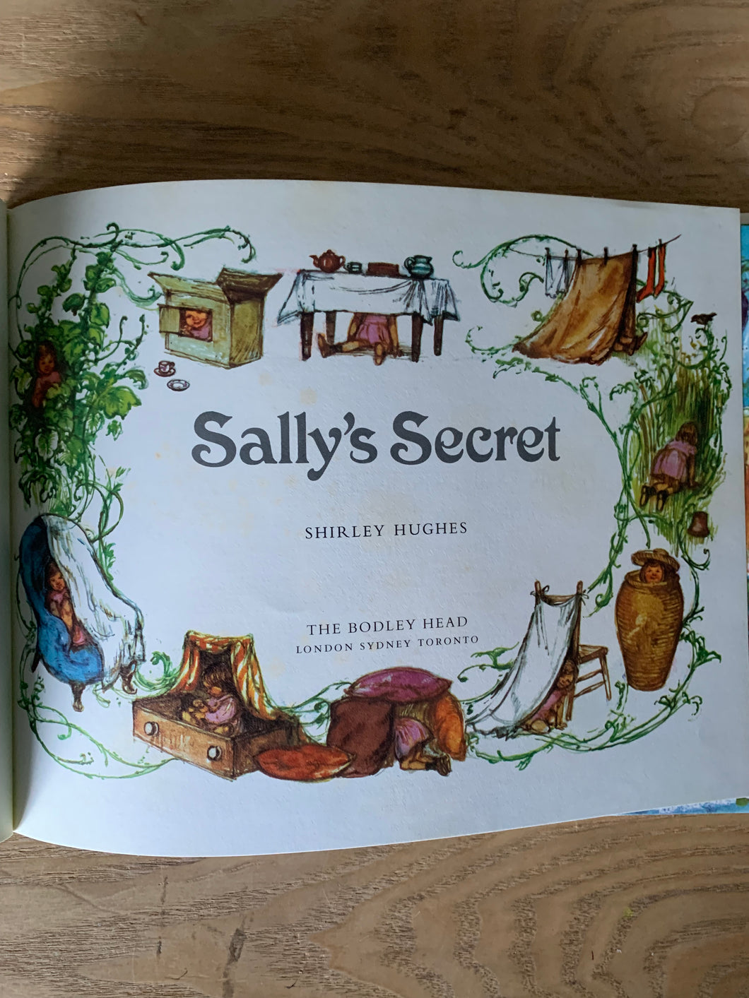 'Sally's Secret’ written and illustrated by Shirley Hughes. Published by Bodley Head. 1973. UK 1st edition. Pictorial boards with matching dust wrapper.