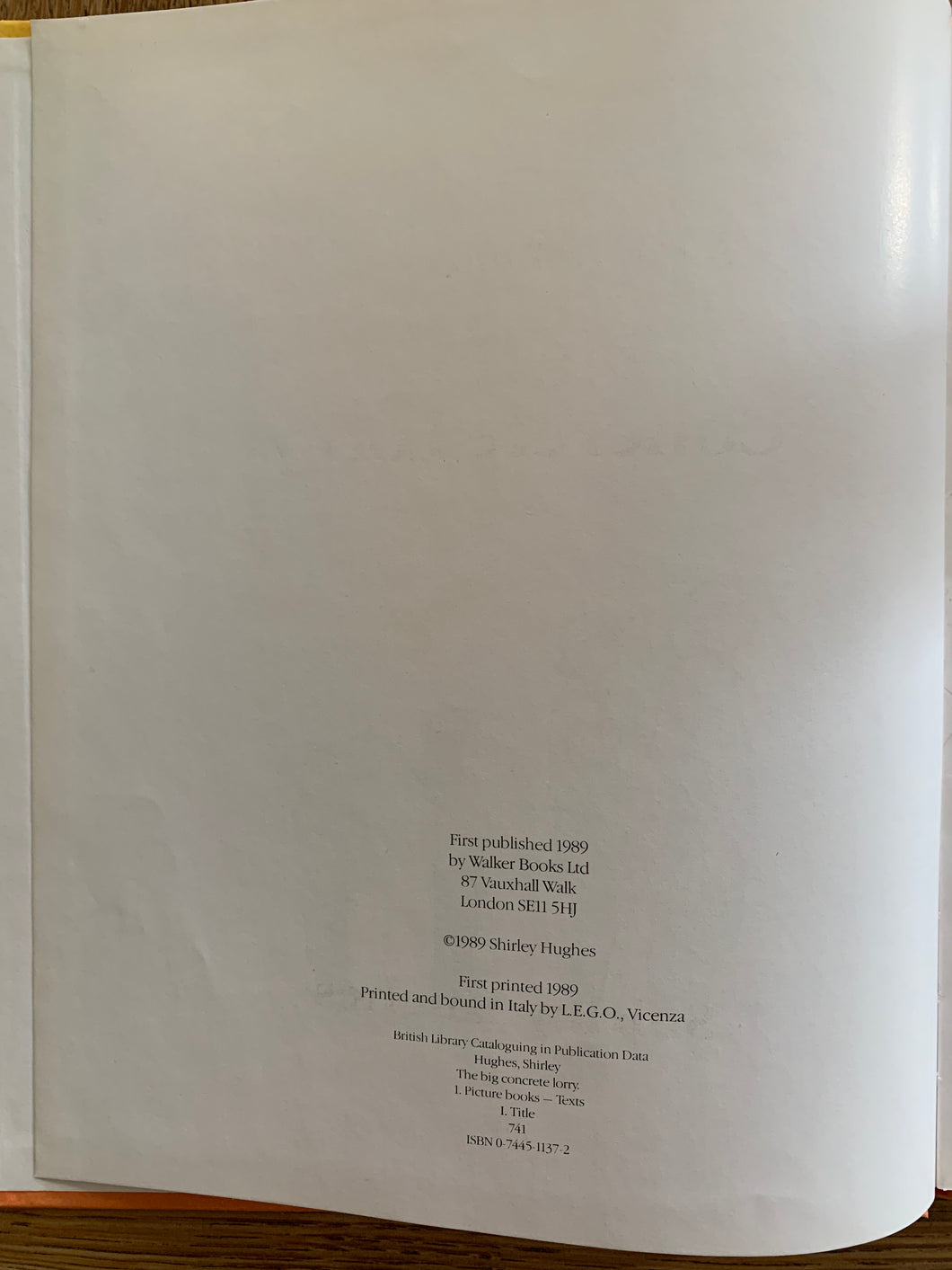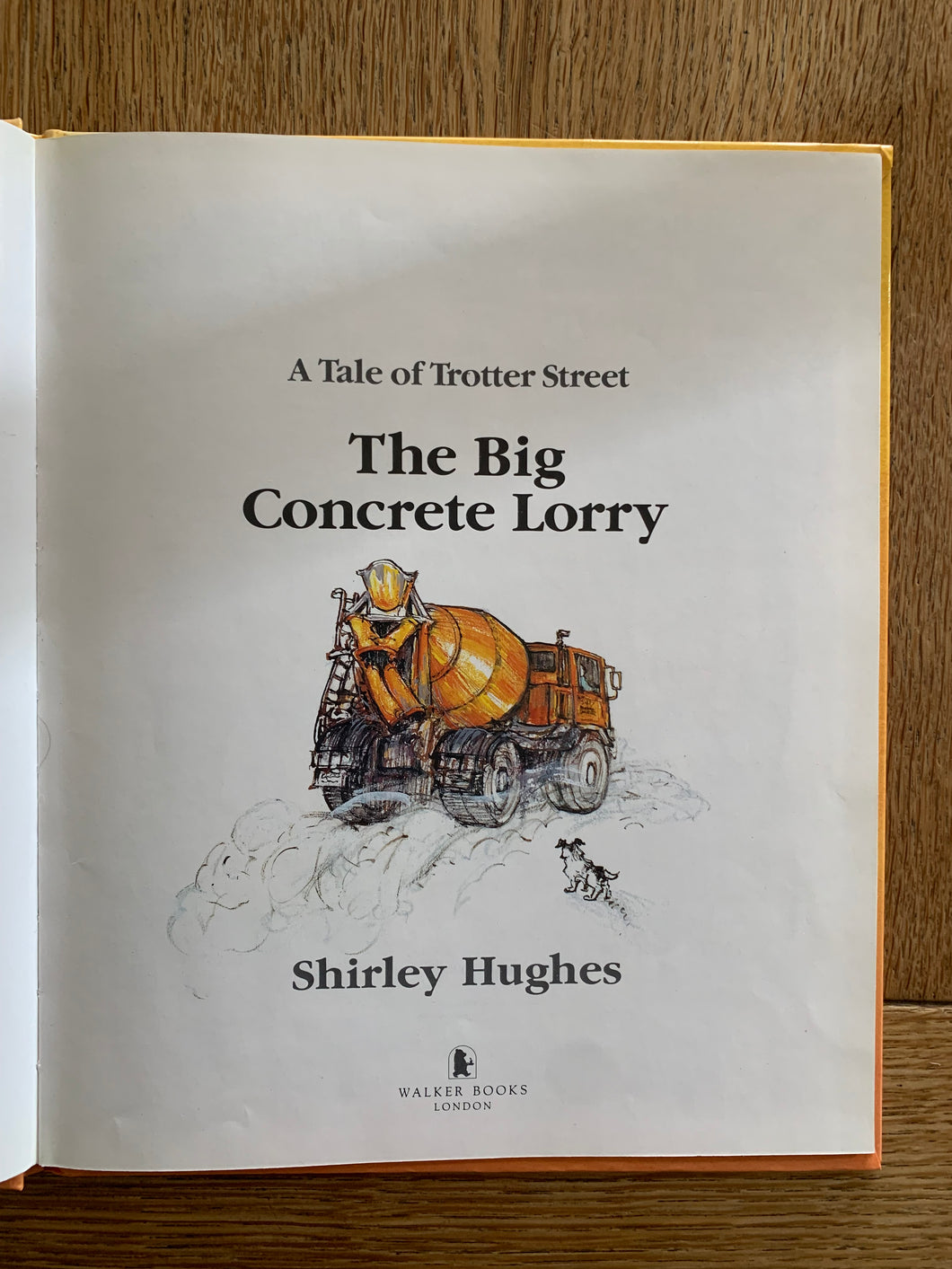 'The Big Concrete Lorry' written and illustrated by Shirley Hughes. Published by Walker Books. 1989. UK 1st edition. Laminated pictorial boards, with no dust wrapper.as issued.