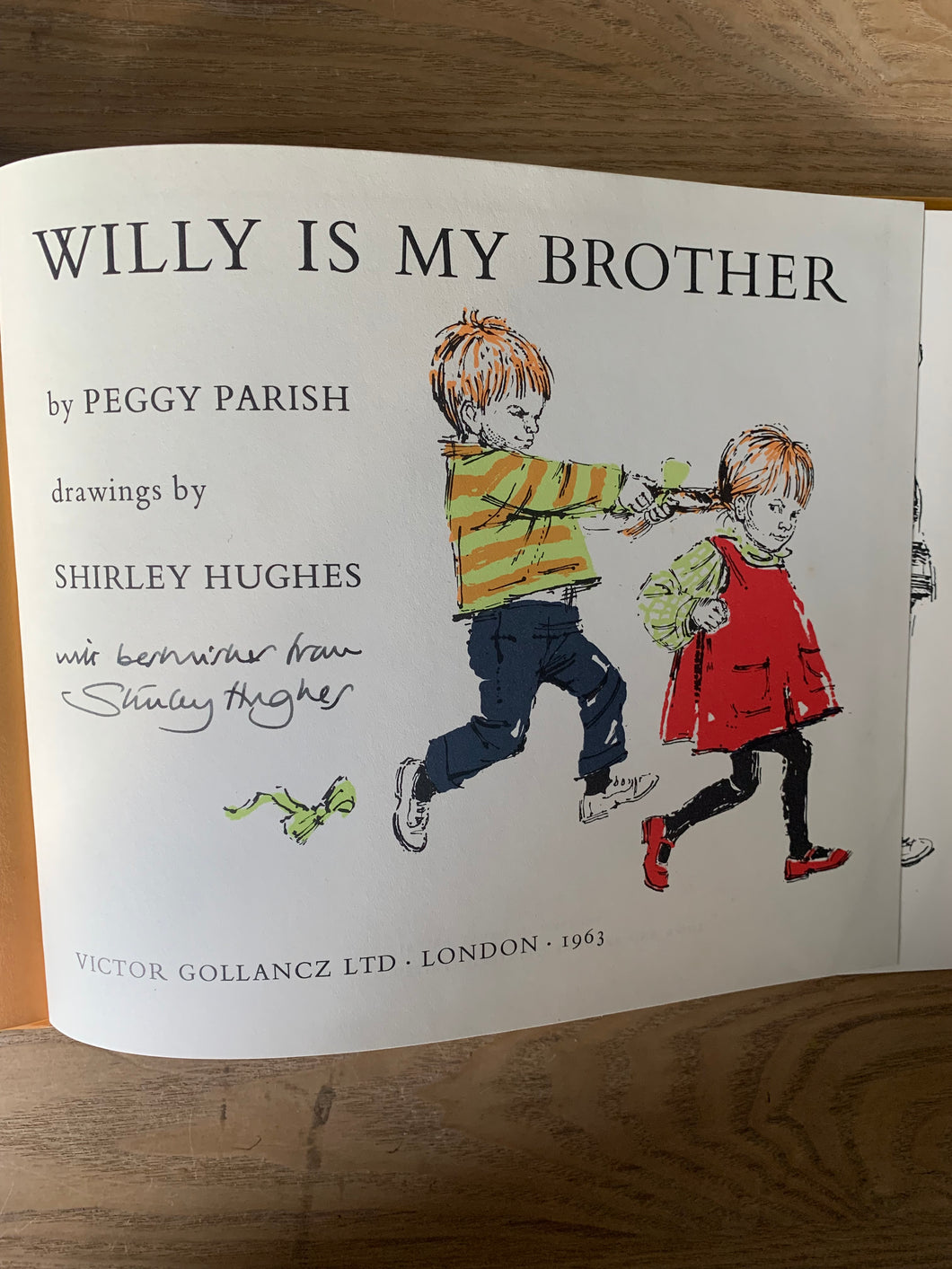 'Willy is my Brother’ by Peggy Parish. Illustrated by Shirley Hughes. Published by Gollancz. 1963. UK 1st edition. Pictorial boards. No dust wrapper .