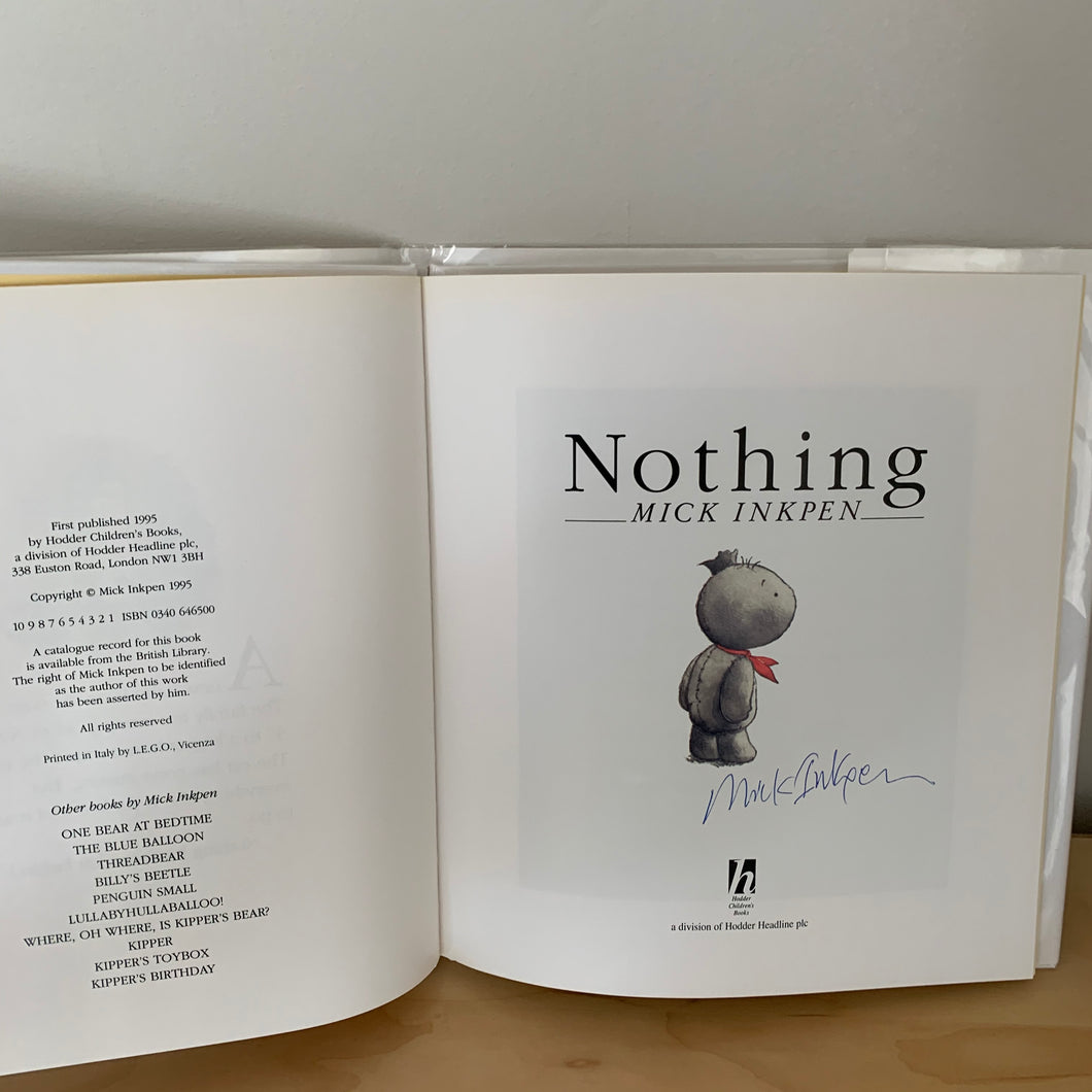 'Nothing’ written and illustrated by Mick Inkpen. Published by Hodder and Stoughton. 1995. UK 1st edition. Laminated pictorial boards with matching dustwrapper.