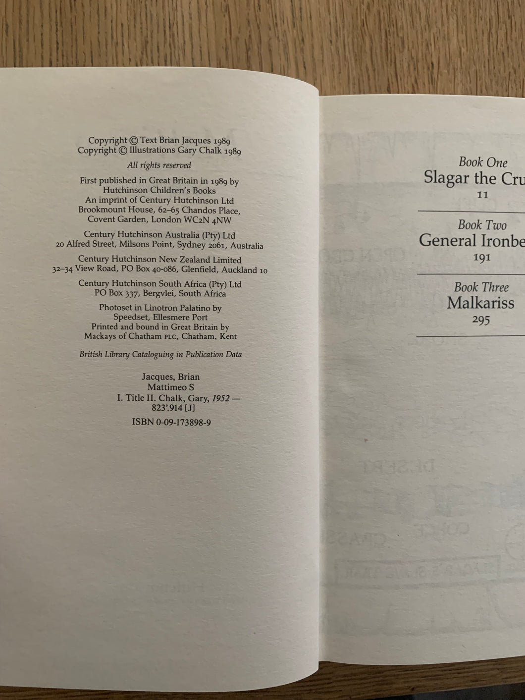 ‘Mattimeo’ by Brian Jacques. Illustrated by Gary Chalk. Published by Hutchinson. 1989. UK 1st edition.