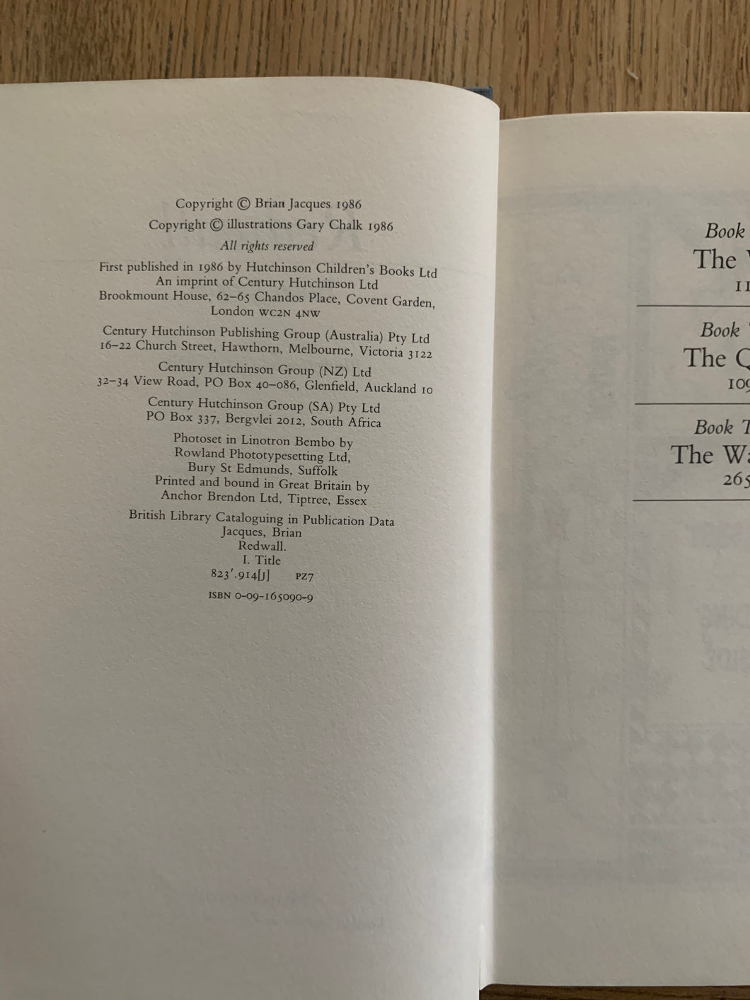 ‘Redwall’ by Brian Jacques. Illustrated by Gary Chalk. Published by Hutchinson. 1988 UK 1st edition.