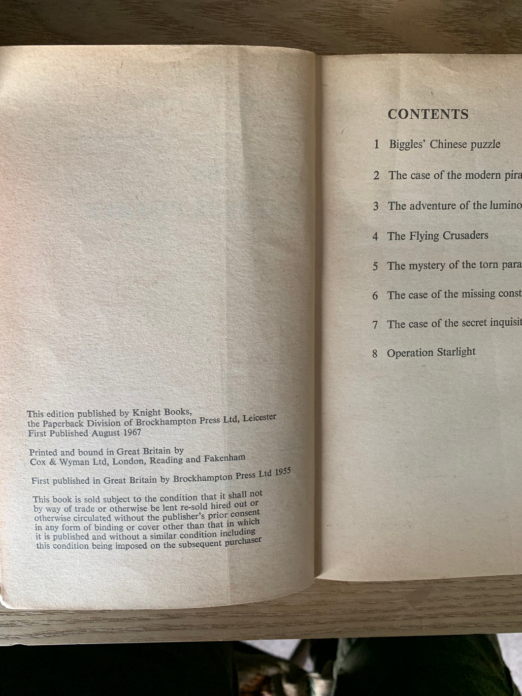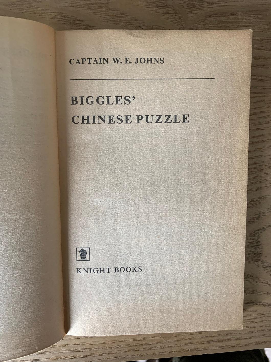 ‘Biggles' Chinese Puzzle’ by Captain W.E Johns. Published by Knight Books. August 1967. UK 1st edition thus. Card Covers.