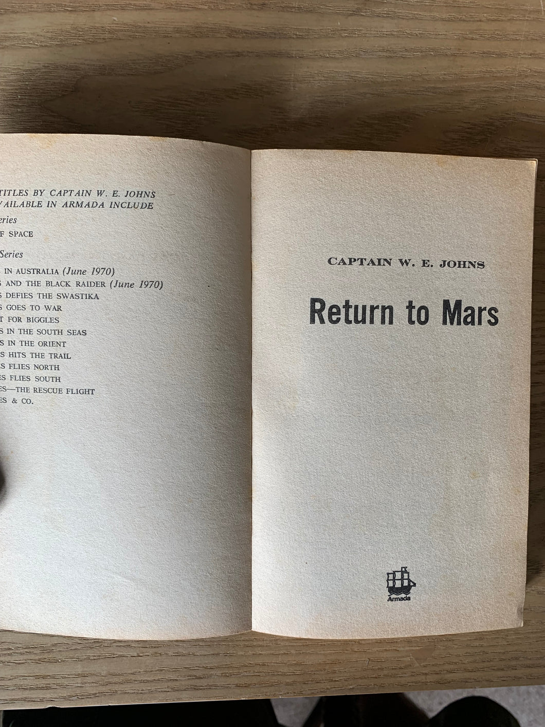 ‘Return To Mars’ by Captain W.E Johns. Published by May Fair Books. Armada Paperbacks. 1970. UK 1st edition thus. Card Covers.