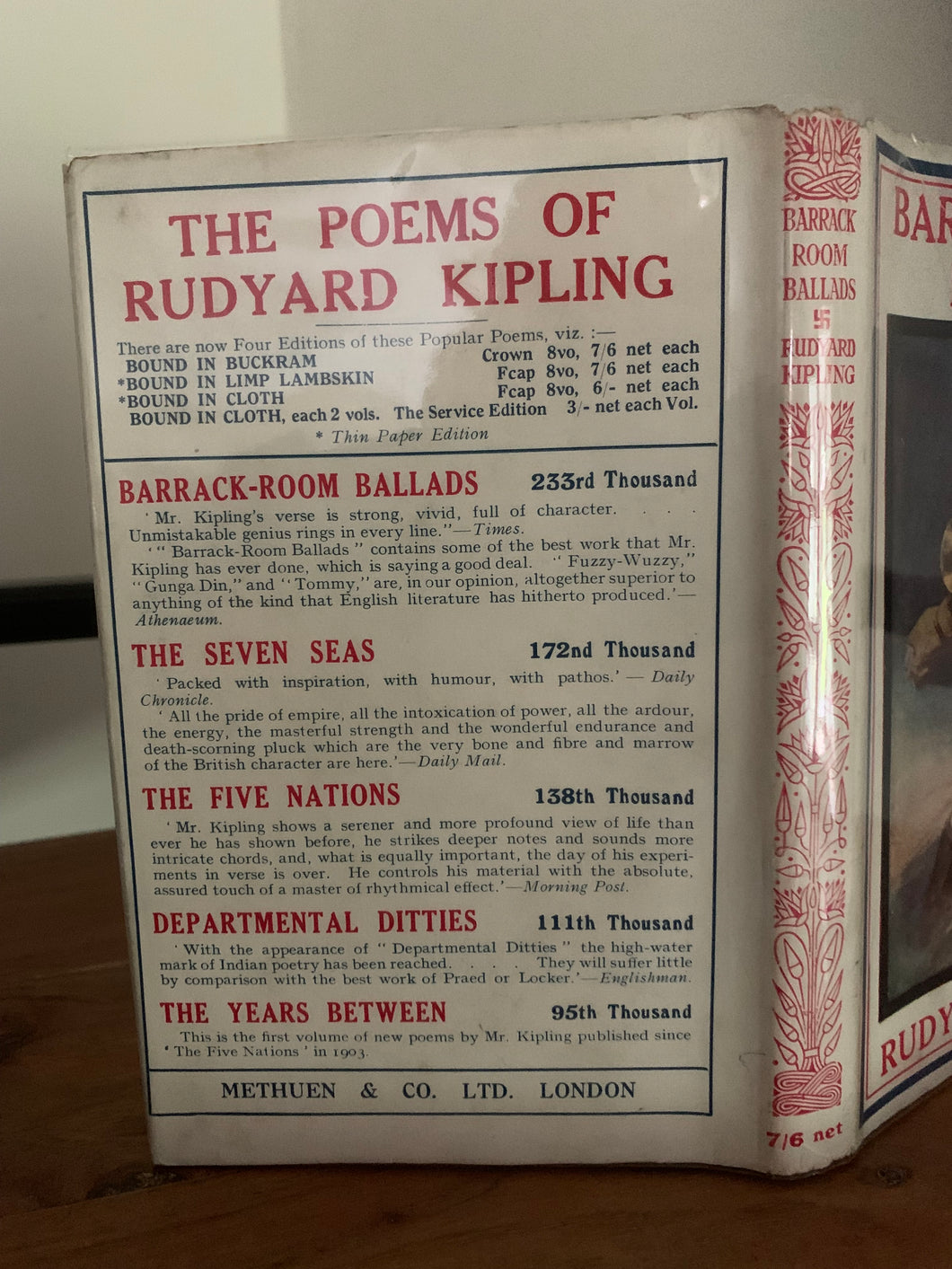 ’Barrack-Room Ballads and Other Verses’ by Rudyard Kipling. Published by Methuen. 1923. UK 58th edition. Red leather. Top edge gilt. Pocket edition.