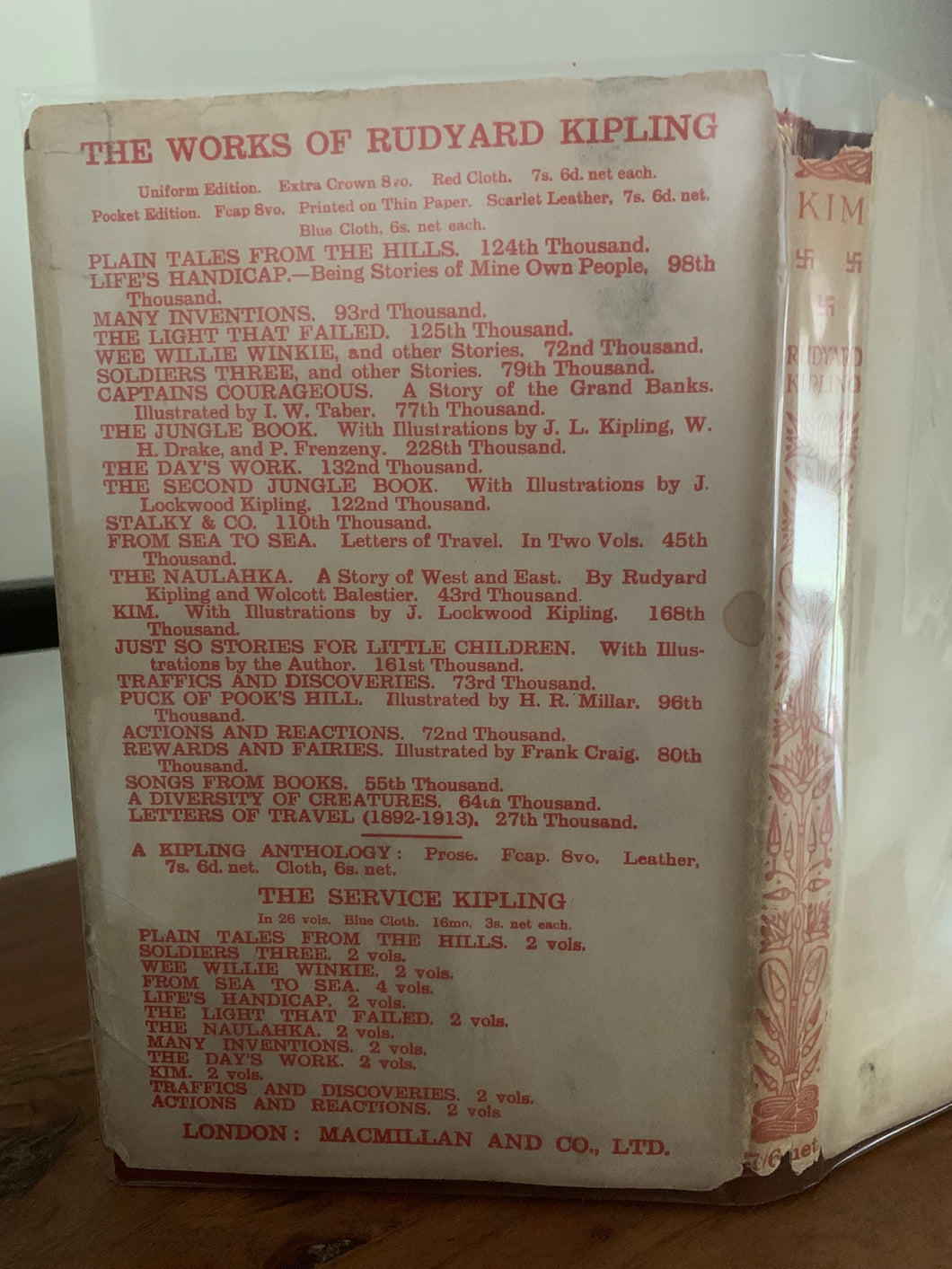 'Kim’ by Rudyard Kipling. Published by Methuen. December 1925. UK reprint edition. Red leather. Top edge gilt. Pocket edition.