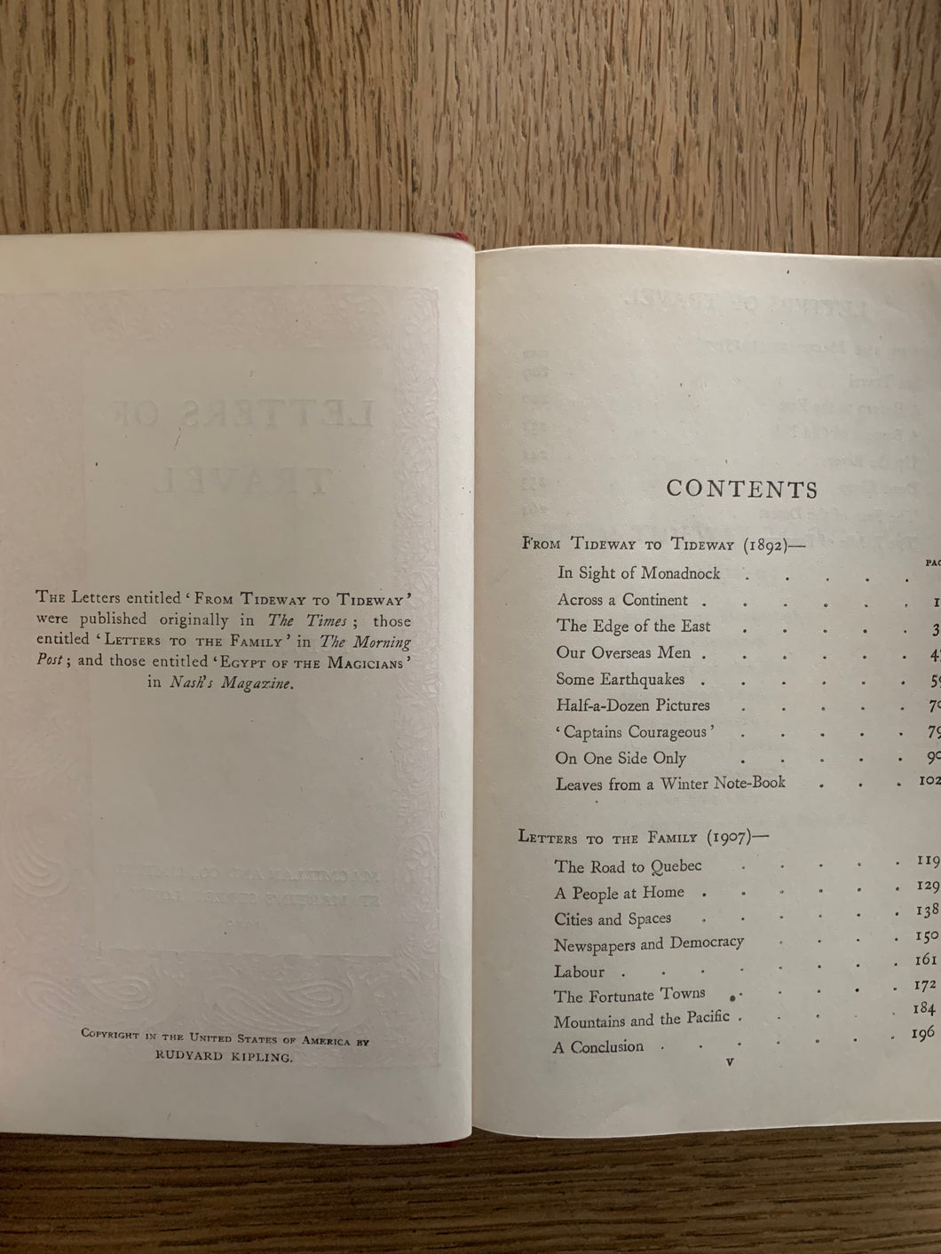 'Letters of Travel (1892-1913)’ by Rudyard Kipling. Published by Methuen. 1920. UK pocket edition. Red leather. Top edge gilt.