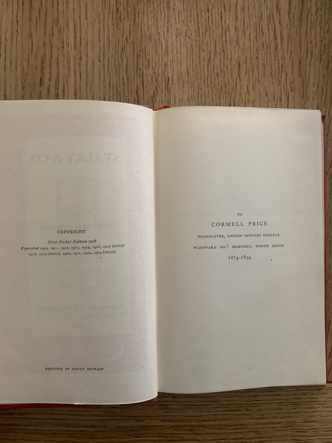 'Stalky and Co.’ by Rudyard Kipling. Published by Methuen. 1924. UK reprint edition. Red leather. Top edge gilt. Pocket edition.