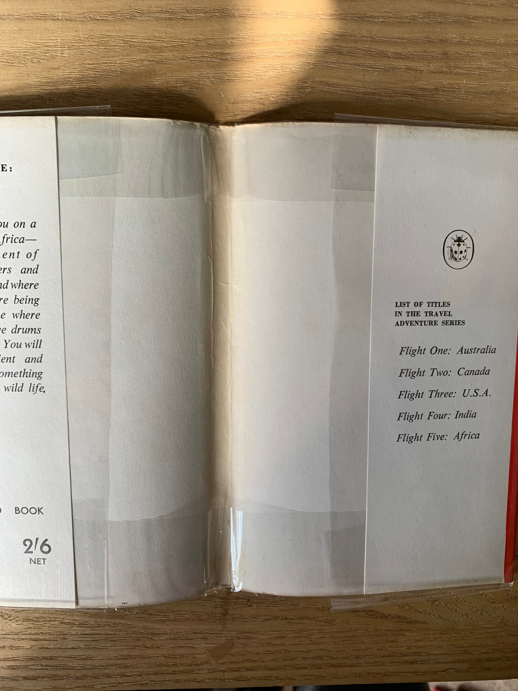 ‘Flight Five: Africa - A Ladybird Book of Travel Adventure’ by David Scott Daniell. Illustrated by Jack Matthew. Published by Wills & Hepworth Ltd. 1961. UK 1st edition. Buff boards with dustwrapper.