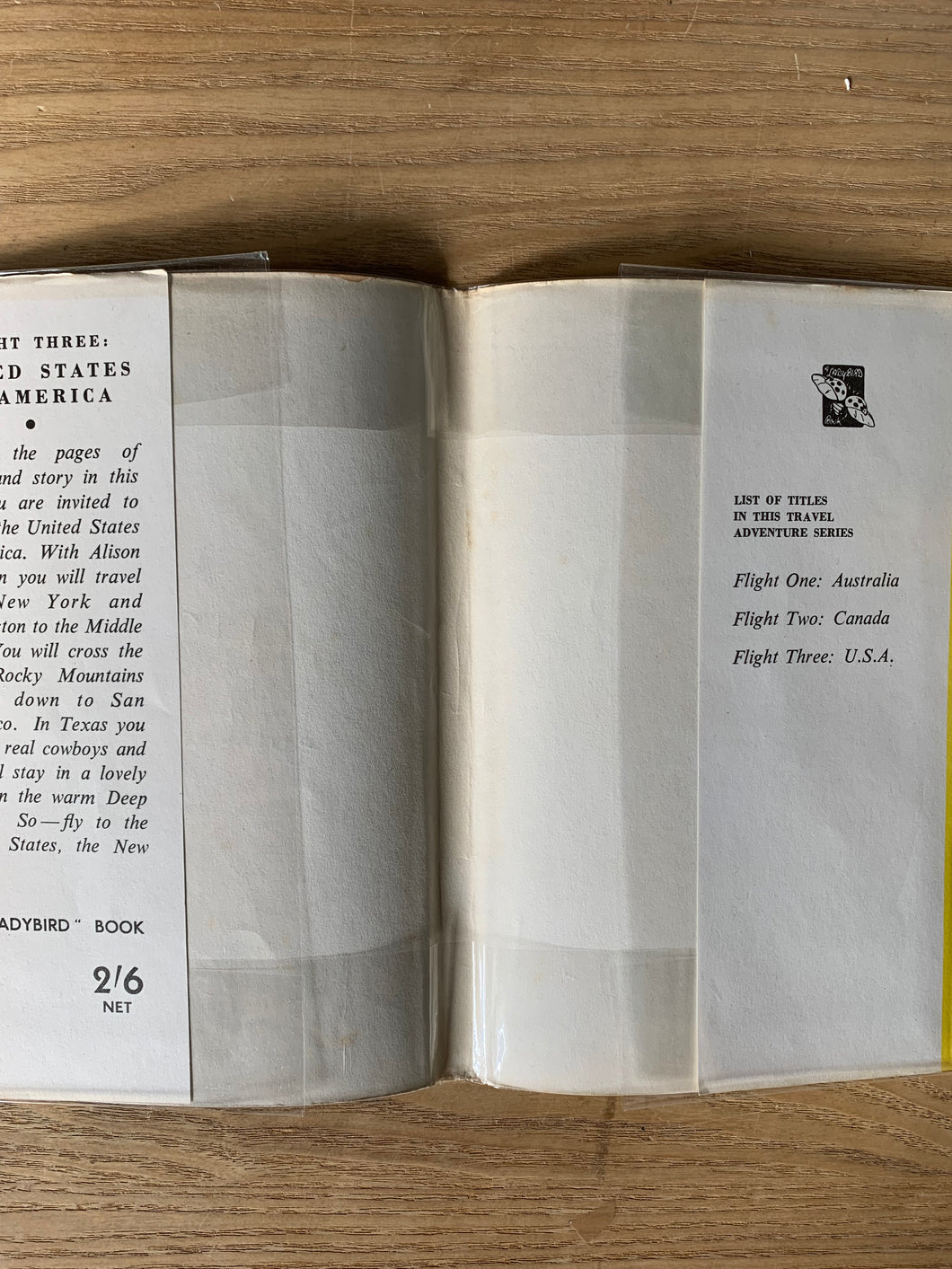 ‘Flight Three: U.S.A - A Ladybird Book of Travel Adventure’ by David Scott Daniell. Illustrated by Jack Matthew. Published by Wills & Hepworth Ltd. 1959. UK 1st edition. Buff boards with dustwrapper.