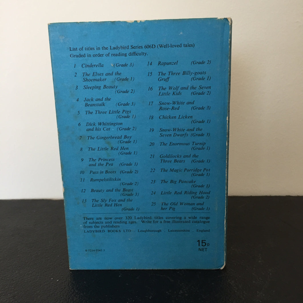 'The Old Woman and her Pig' by Vera Southgate. Illustrated by Robert Lumley. Published by Ladybird Books. 1973. UK 1st edition. Pictorial boards. No dust wrapper as issued. The book is in very good condition with no marks and a single name written neatly at the top of the fep. There is some wear to the top/base of the spine, edges and corners and marks on the rear cover. Price of 15p printed on the rear cover. Book 25 of series 606D. There are 25 books listed on the rear cover.