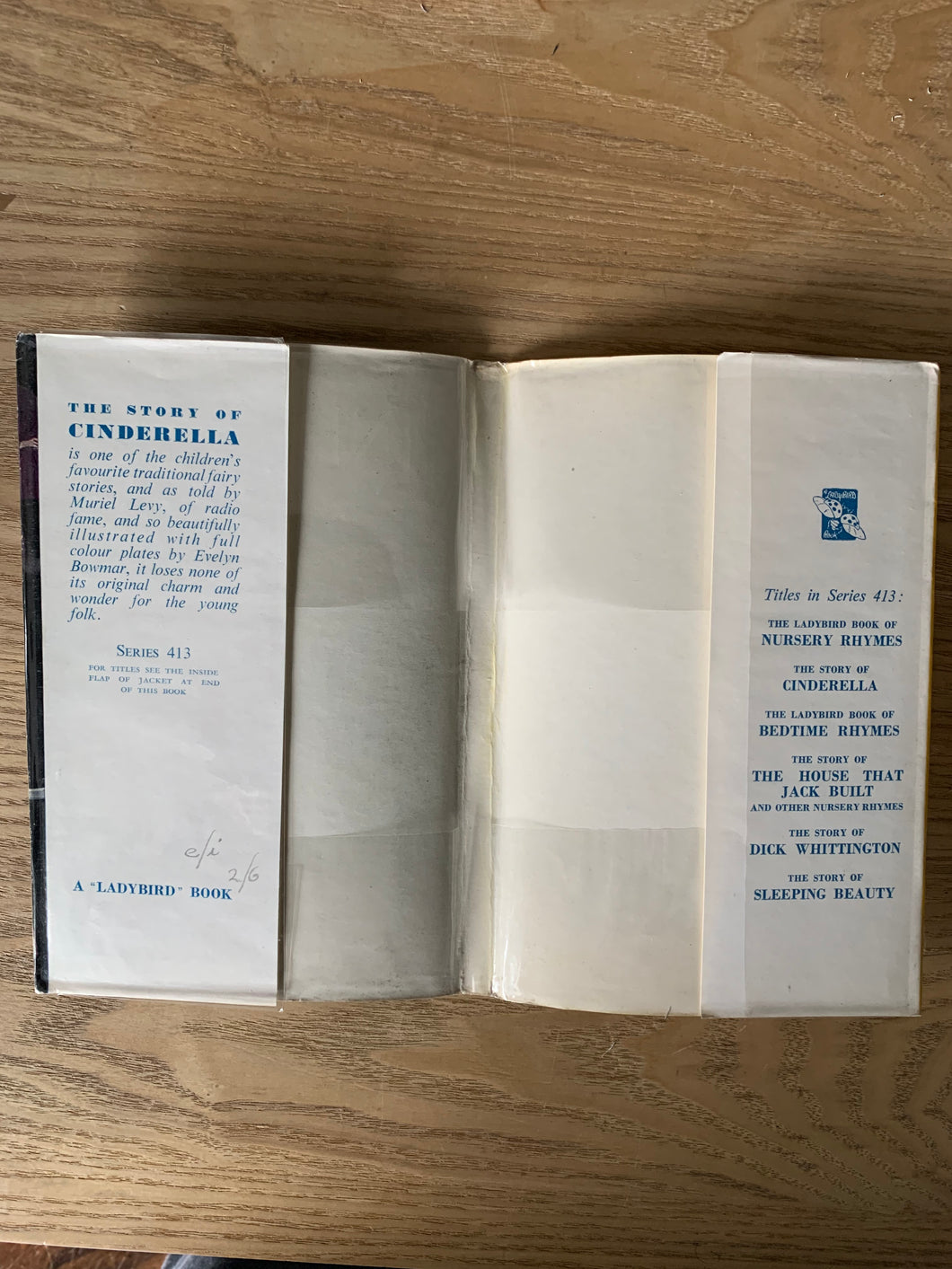 The dust wrapper is also in very good + condition and is not price clipped, although 2/6 has been written on the inside flap. There is light wear to the top/base of the spine and corners. A rare beautiful book. The book was initially published as part of the 413 series.