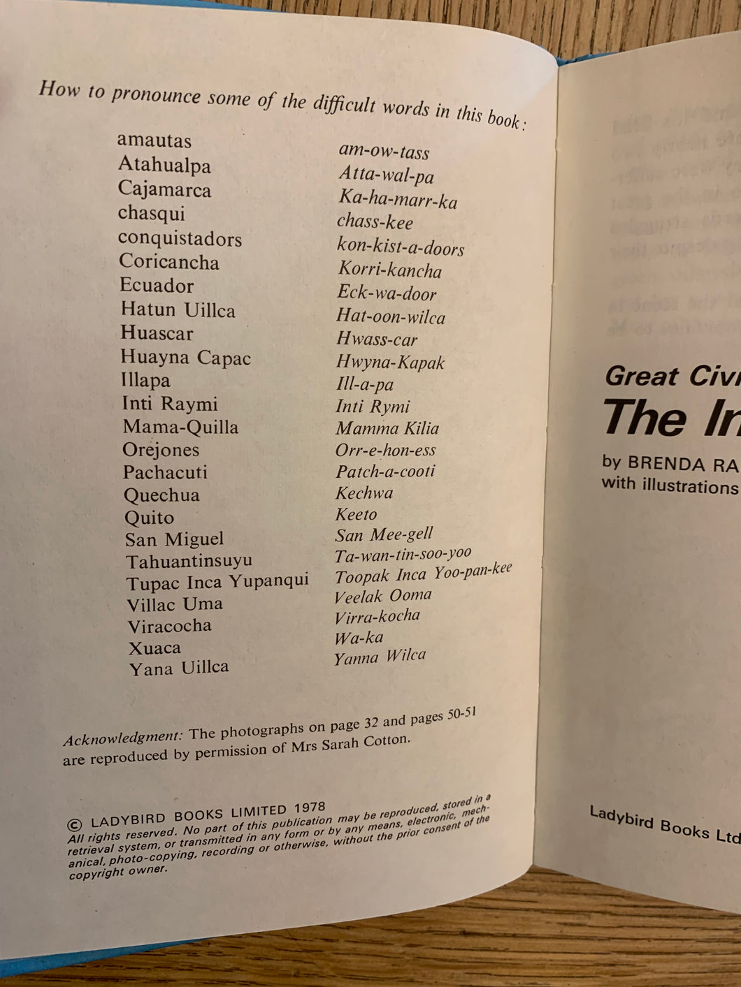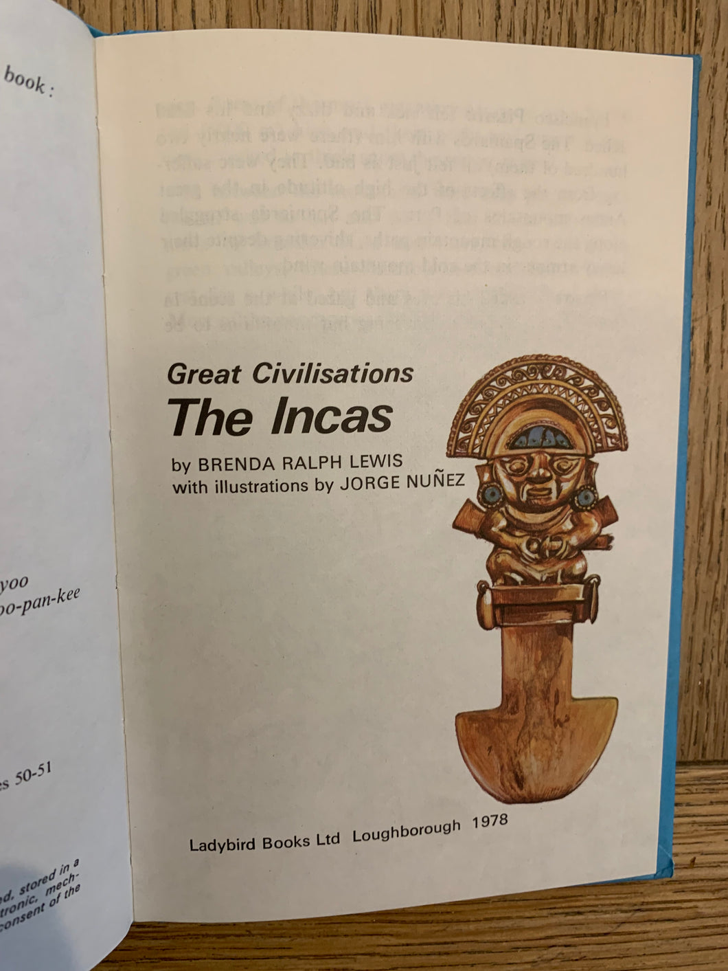 'Great Civilisations: The Incas' by Brenda Ralph Lewis. illustrated by Jorge Nunez. Published by Ladybird Books. 1978. UK reprint edition. Decorative boards. No dust wrapper as issued.