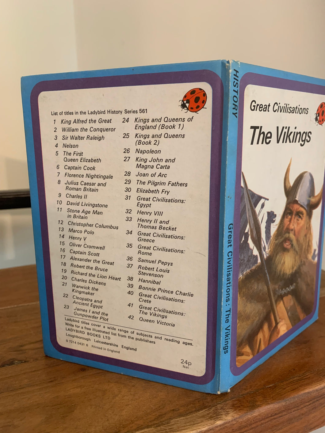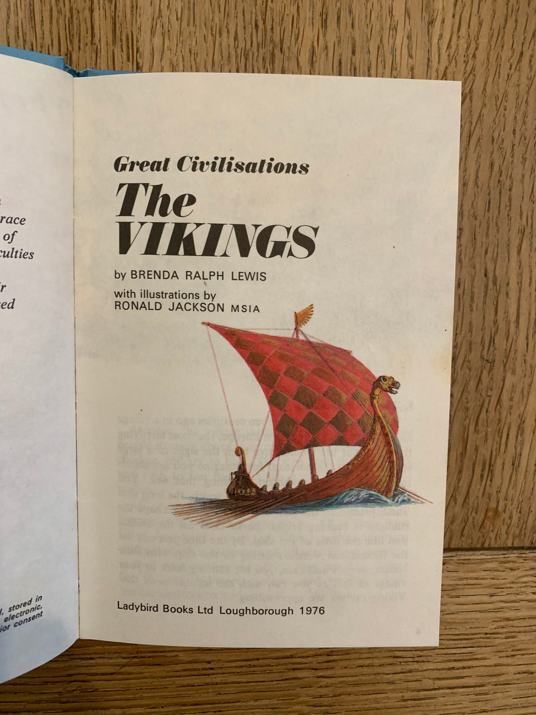 'Great Civilisations: The Vikings' by Brenda Ralph Lewis. illustrated by Ronald Jackson. Published by Ladybird Books. 1976. UK reprint edition. Decorative boards. No dust wrapper as issued.