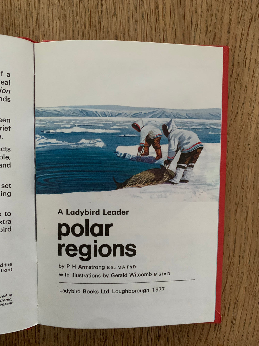 'Ladybird Leaders - Polar Regions' by P.H. Armstrong. Illustrated by Gerald Witcomb. Published by Ladybird Books. 1973. UK reprint edition. Decorative boards. No dust wrapper as issued.