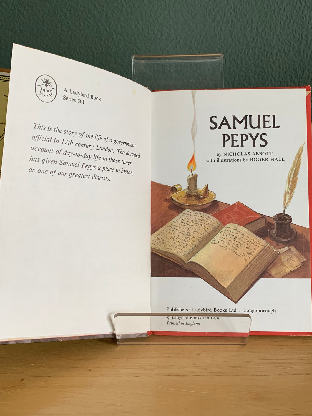 ‘Samuel Pepys’ by Nicholas Abbott. Illustrated by Roger Hall. Published by Ladybird Books. 1974. UK 1st edition. Pictorial boards. No dust wrapper as issued.