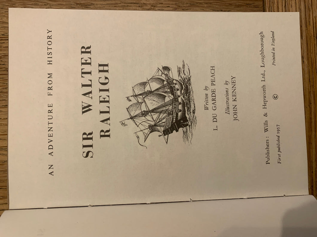 ‘Sir Walter Raleigh - An Adventure From History’ by L. Du Garde Peach. Illustrated by John Kenney. Published by Wills & Hepworth Ltd. 1957. UK 1st edition. Buff boards with dustwrapper.