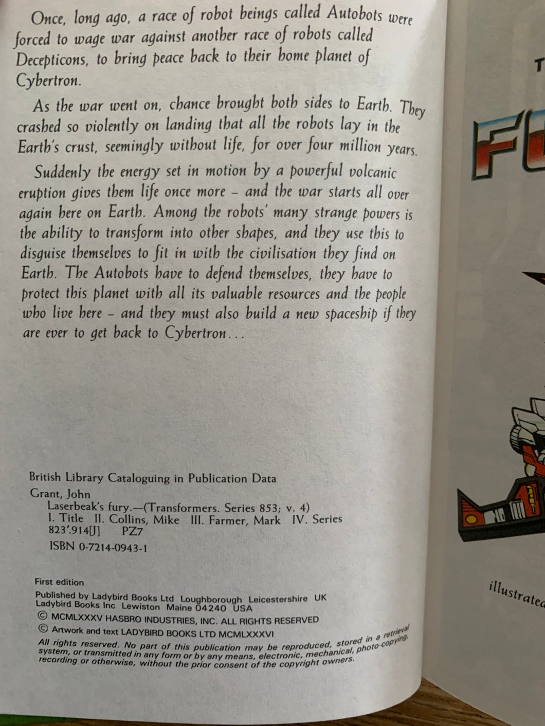 ‘The Transformers: Laserbeak's Fury’ by John Grant. Illustrated by Mike Collins et al. Published by Ladybird Books. 1986. UK 1st edition. Laminated pictorial boards. No dust wrapper as issued.