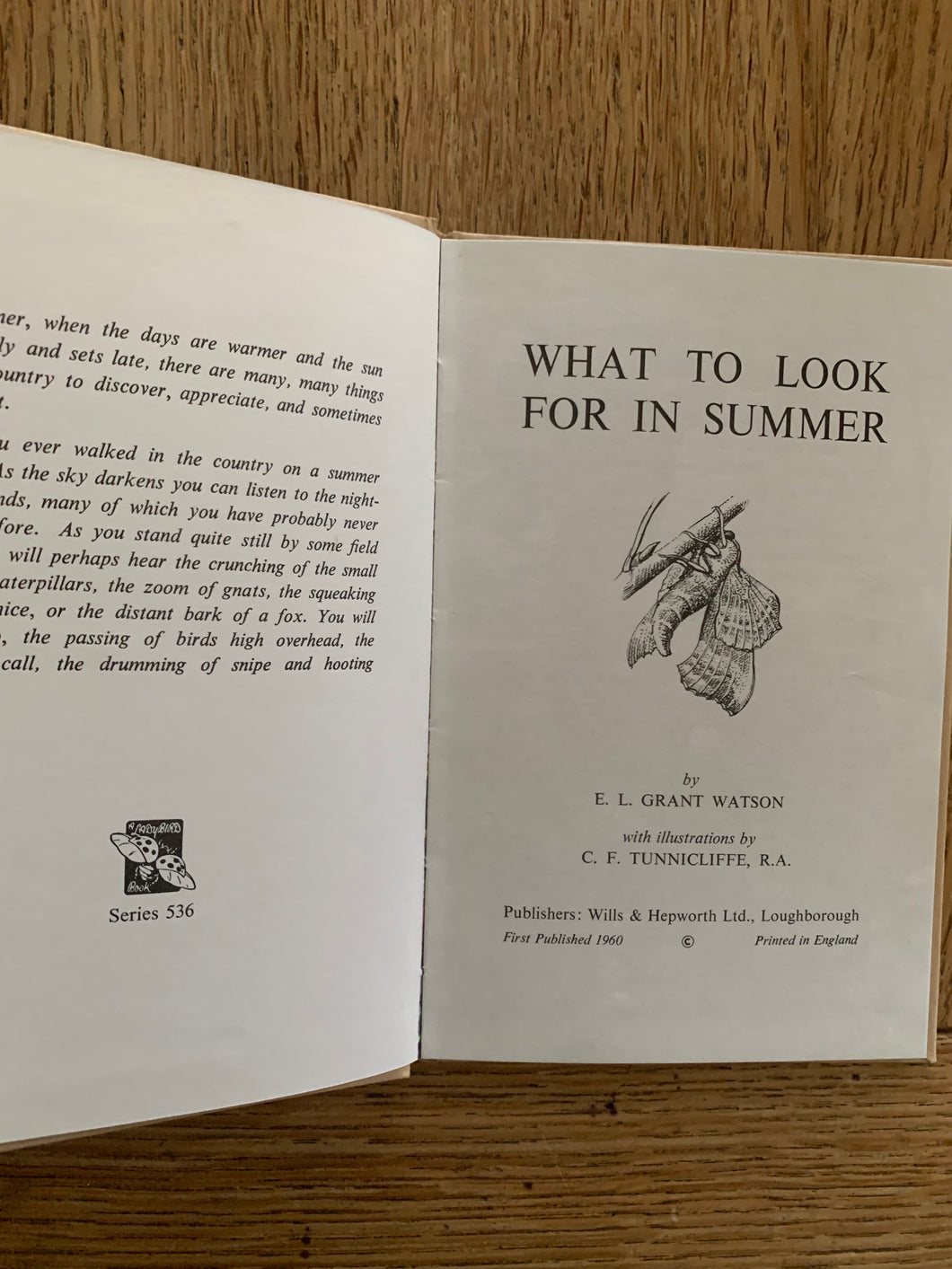 What To Look For In Summer' by E.L. Grant Watson. Illustrated by C.F. Tunnicliffe. Published by Wills & Hepworth Ltd. 1960. UK 1st edition. Buff boards. Ladybird series 536.