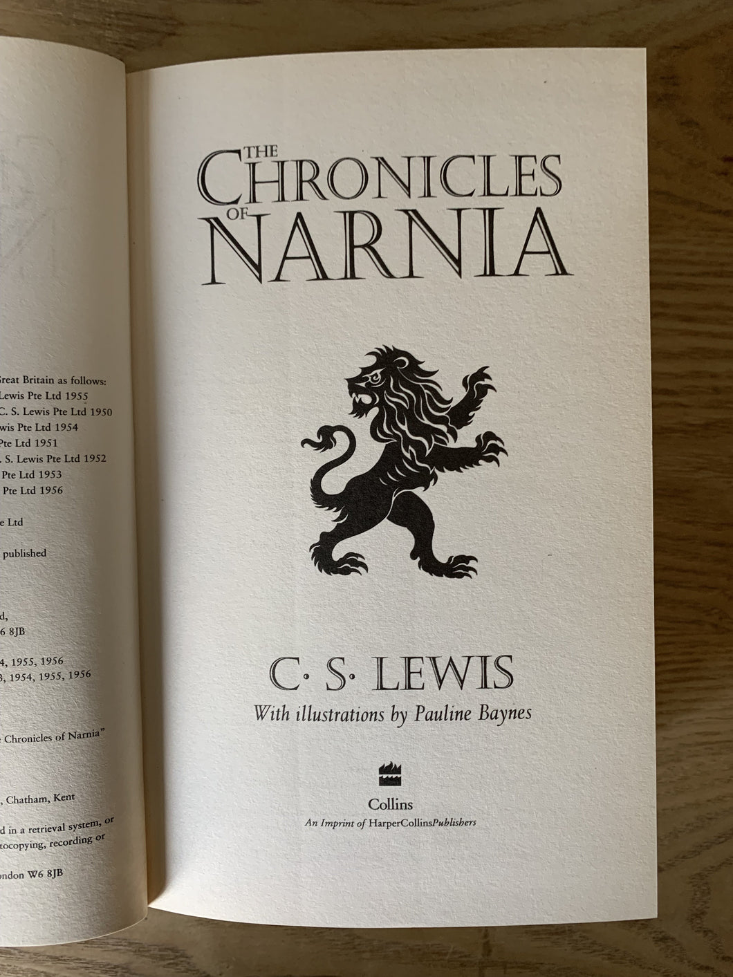‘The Chronicles of Narnia’ by C.S. Lewis. Illustrated by Pauline Baynes. Published by Harper Collins. 1998. UK 1st edition thus. Pictorial boards, with matching dust wrapper.