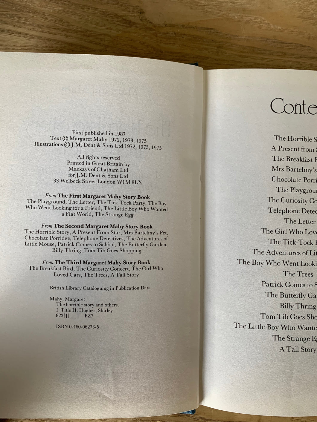 ‘The Horrible Story and others' by Margaret Mahy. Illustrated by Shirley Hughes. Published by Dent. 1987. UK 1st edition.
