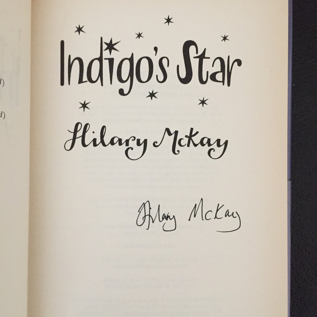’Indigo’s Star (signed)’ by Hilary McKay. Published by Hodder. 2003. UK 1st edition. The book is in near fine condition with no marks or inscriptions.The dust wrapper is also in near fine condition and is not price clipped. Signed by the author on the title page without dedication. We have other titles from this popular author.