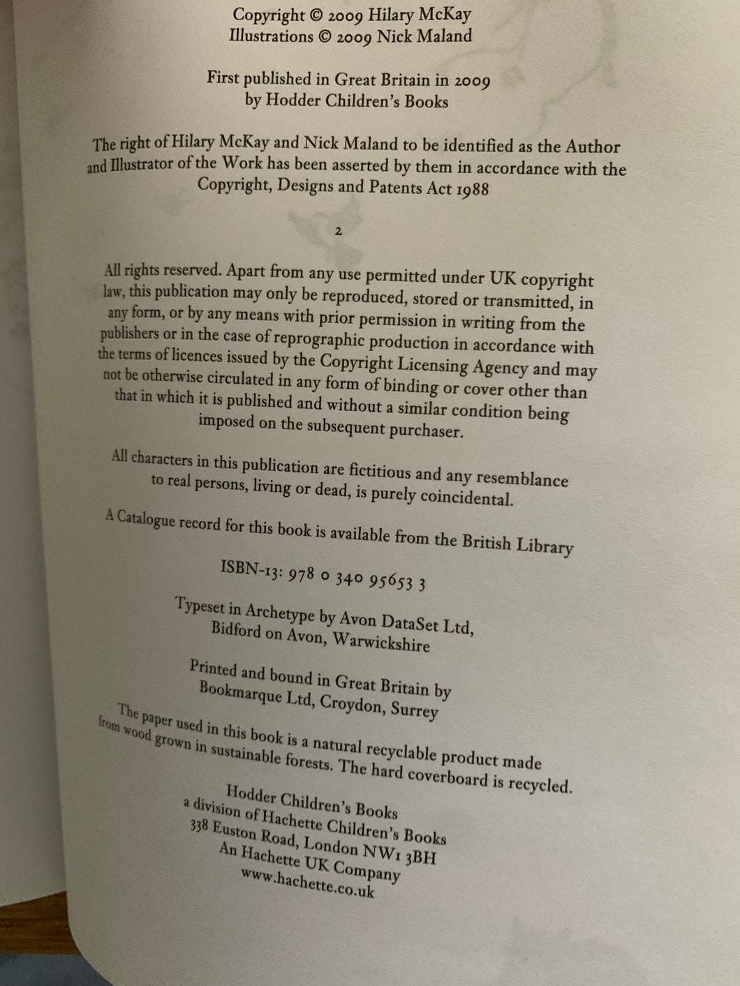‘Wishing Tomorrow’ by Hilary McKay. Published by Hodder. 2009. UK 2nd impression.