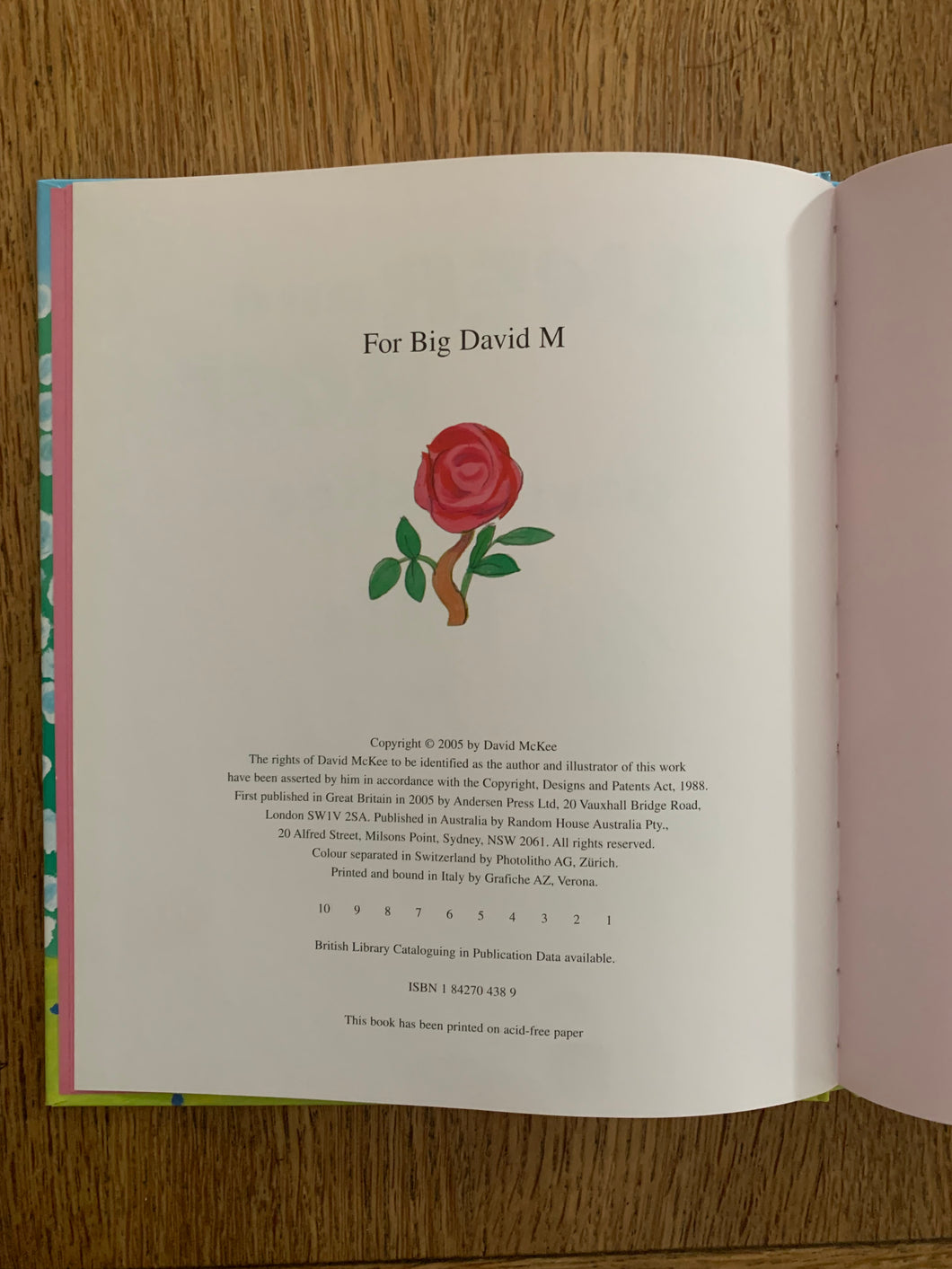‘Elmer and Rose' written and illustrated by David McKee. Published by Anderson Press. UK 1st edition. 2005. Laminated pictorial boards. No dust wrapper as issued.