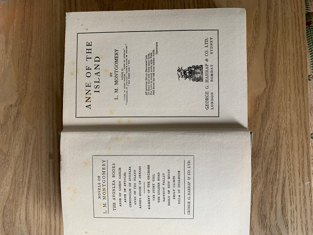 'Anne of the Island’ by L.M. Montgomery. Published by George G. Harrap. January 1934. UK reprint edition.