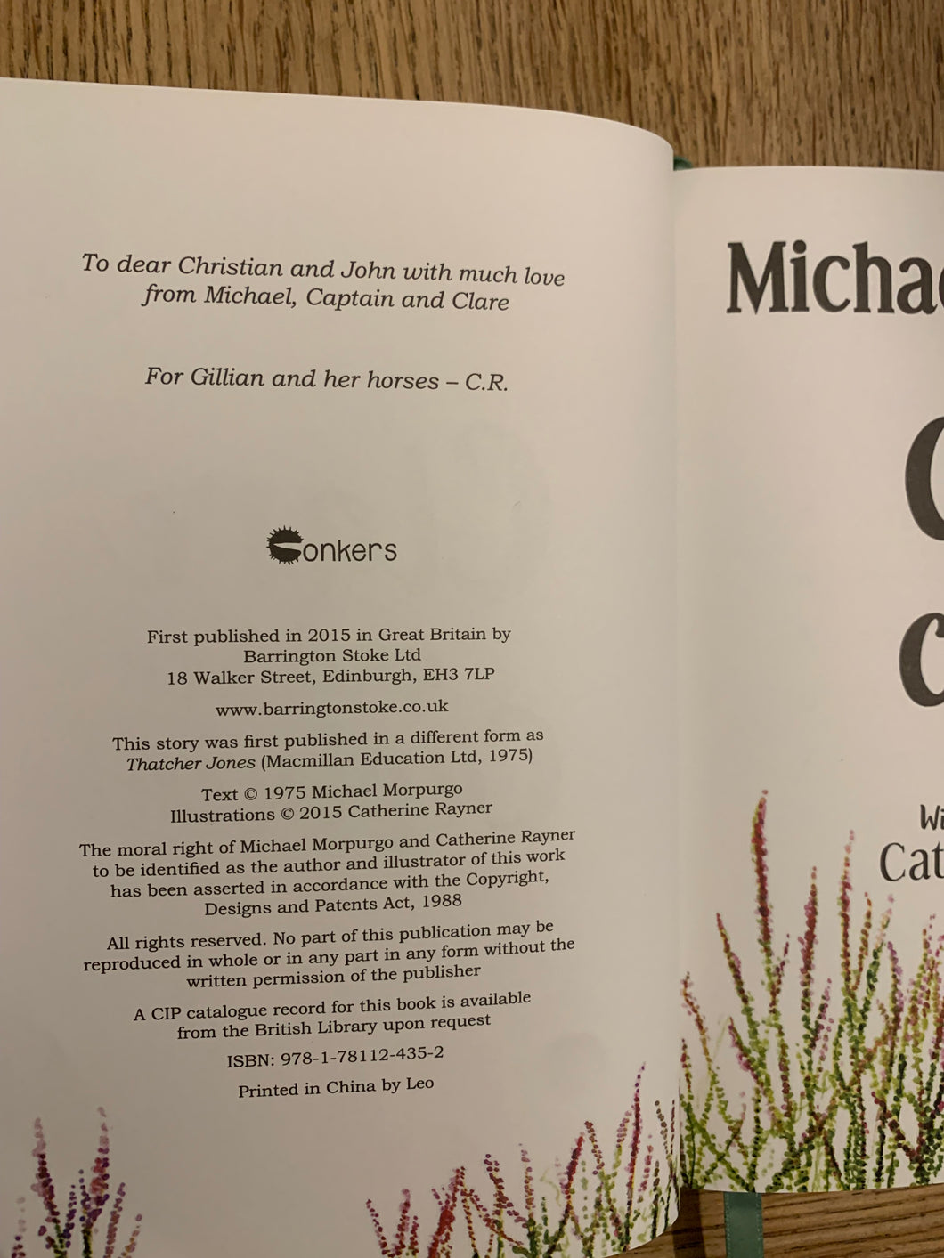 ‘Clare and Her Captain’ by Michael Morpurgo. Illustrated by Catherine Rayner. Published by Barrington Stoke. 2015. UK 1st edition thus.