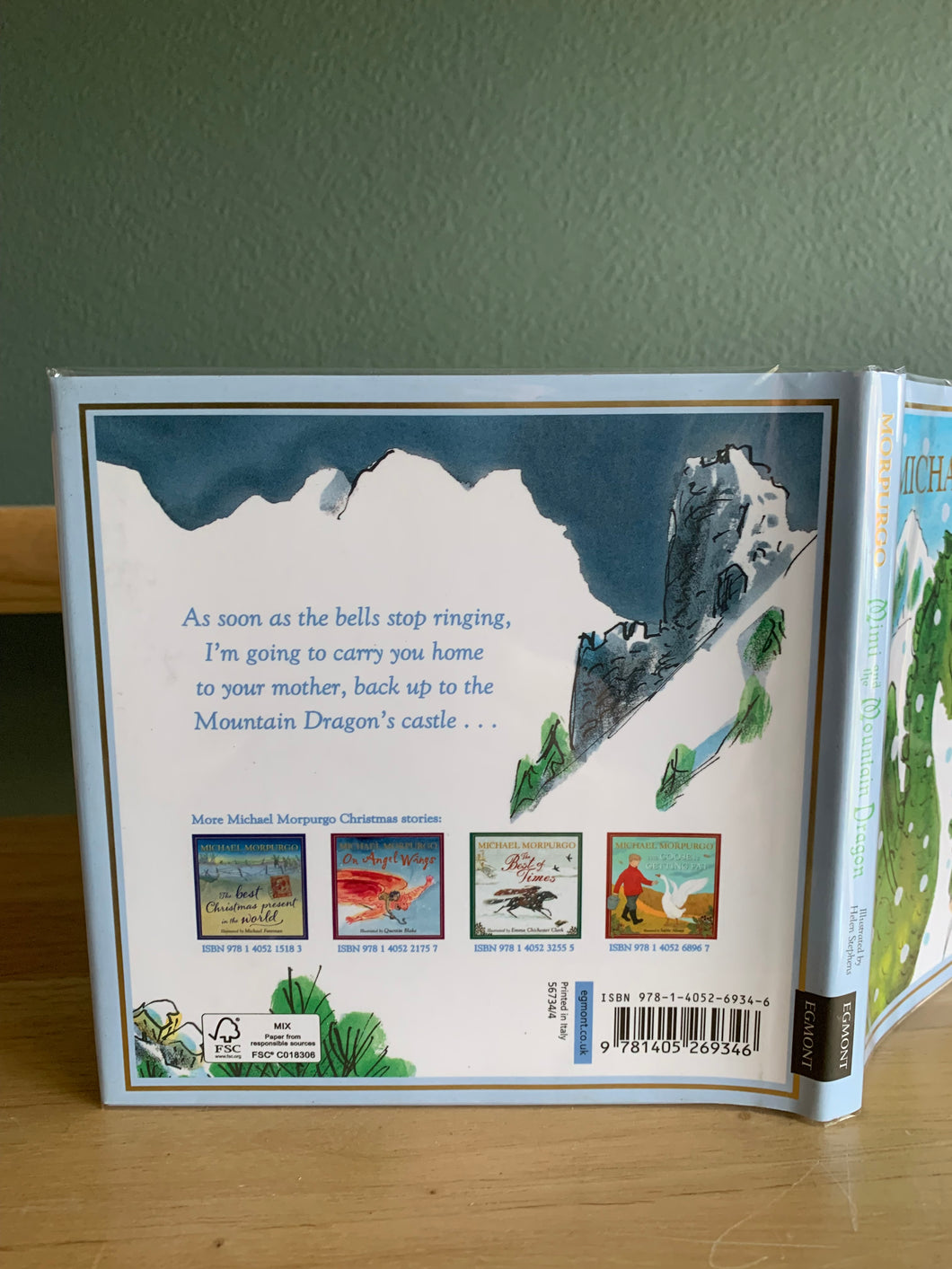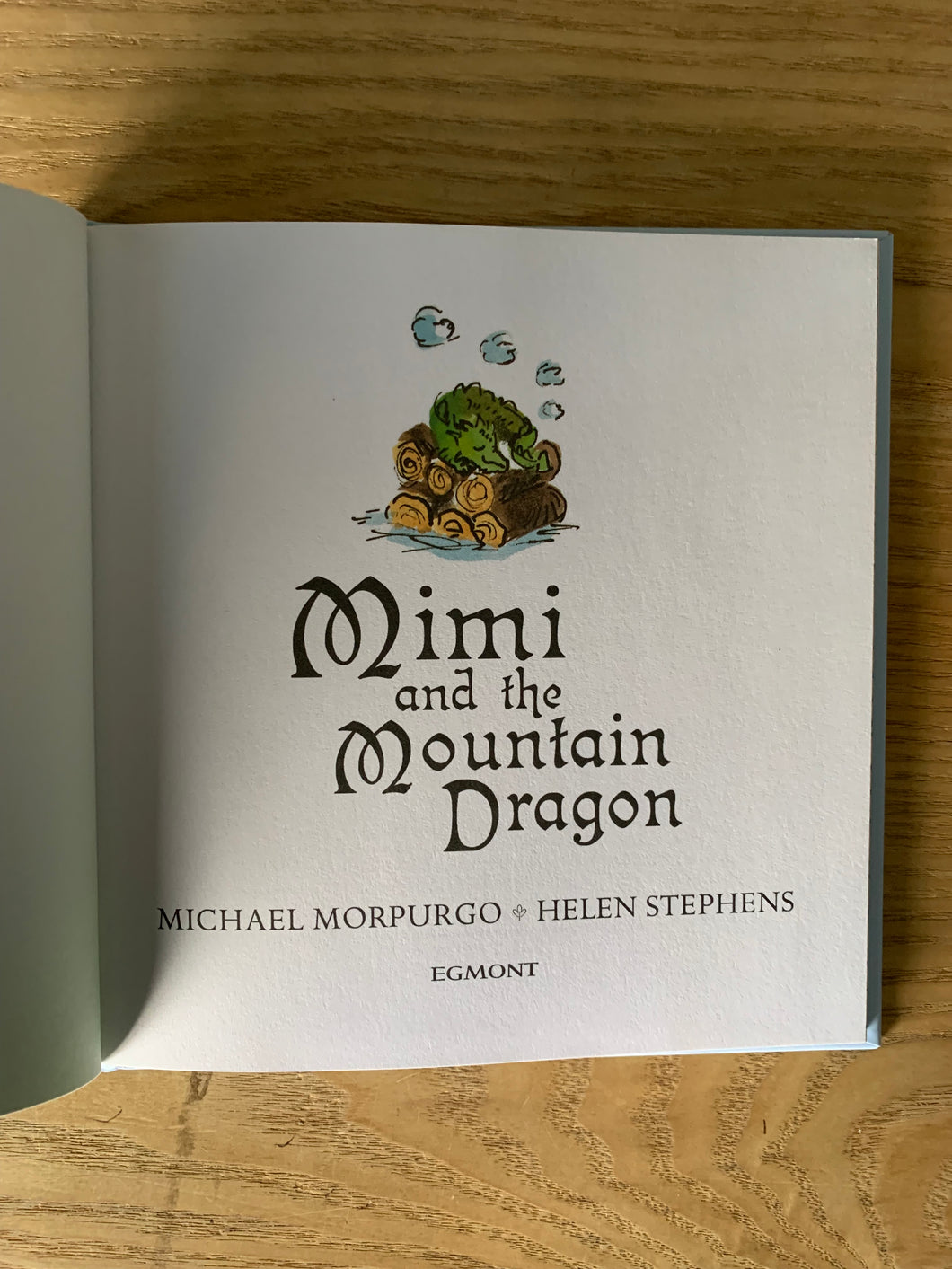 'Mimi and the Mountain Dragon’ by Michael Morpurgo. Illustrated by Helen Stephens. Published by Egmont. 2014. UK 1st edition. Pictorial boards with matching dust wrapper.