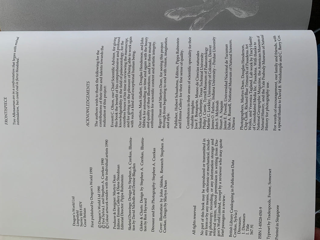 ‘Dinosaurs - A Global View’ by Sylvia & Stephen Czerkas. Illustrated by Douglas Henderson et al. Published by Dragon's World. 1990. UK 1st edition. Large format. 247pp. A very heavy book.