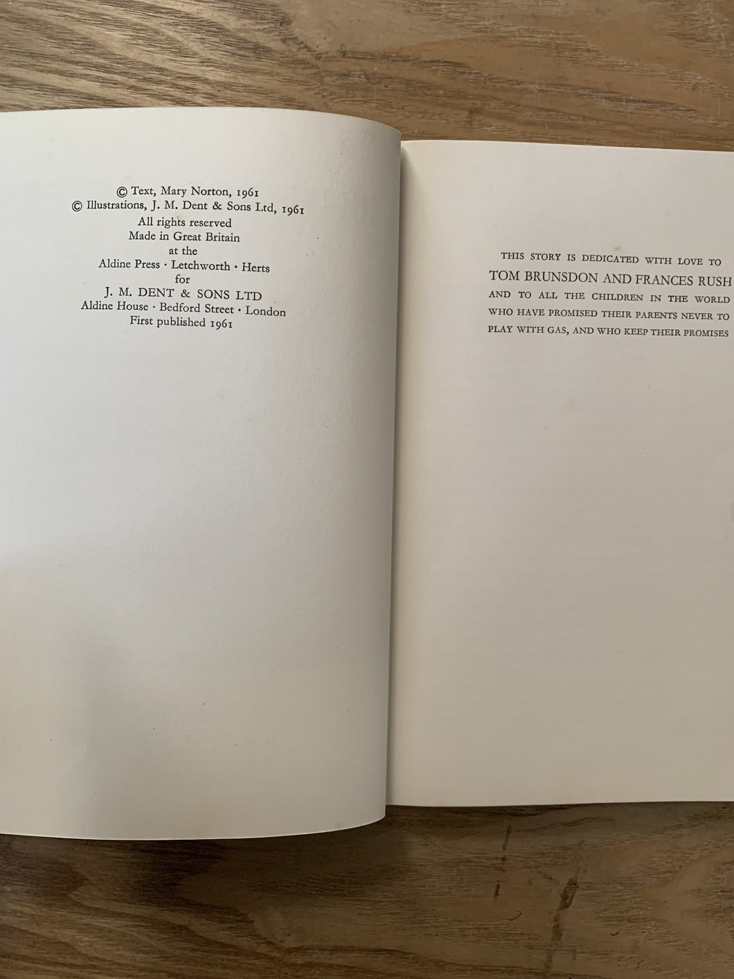 ’The Borrowers Aloft’ by Mary Norton. Illustrated by Diana Stanley. Published by Dent. 1961. UK 1st edition.