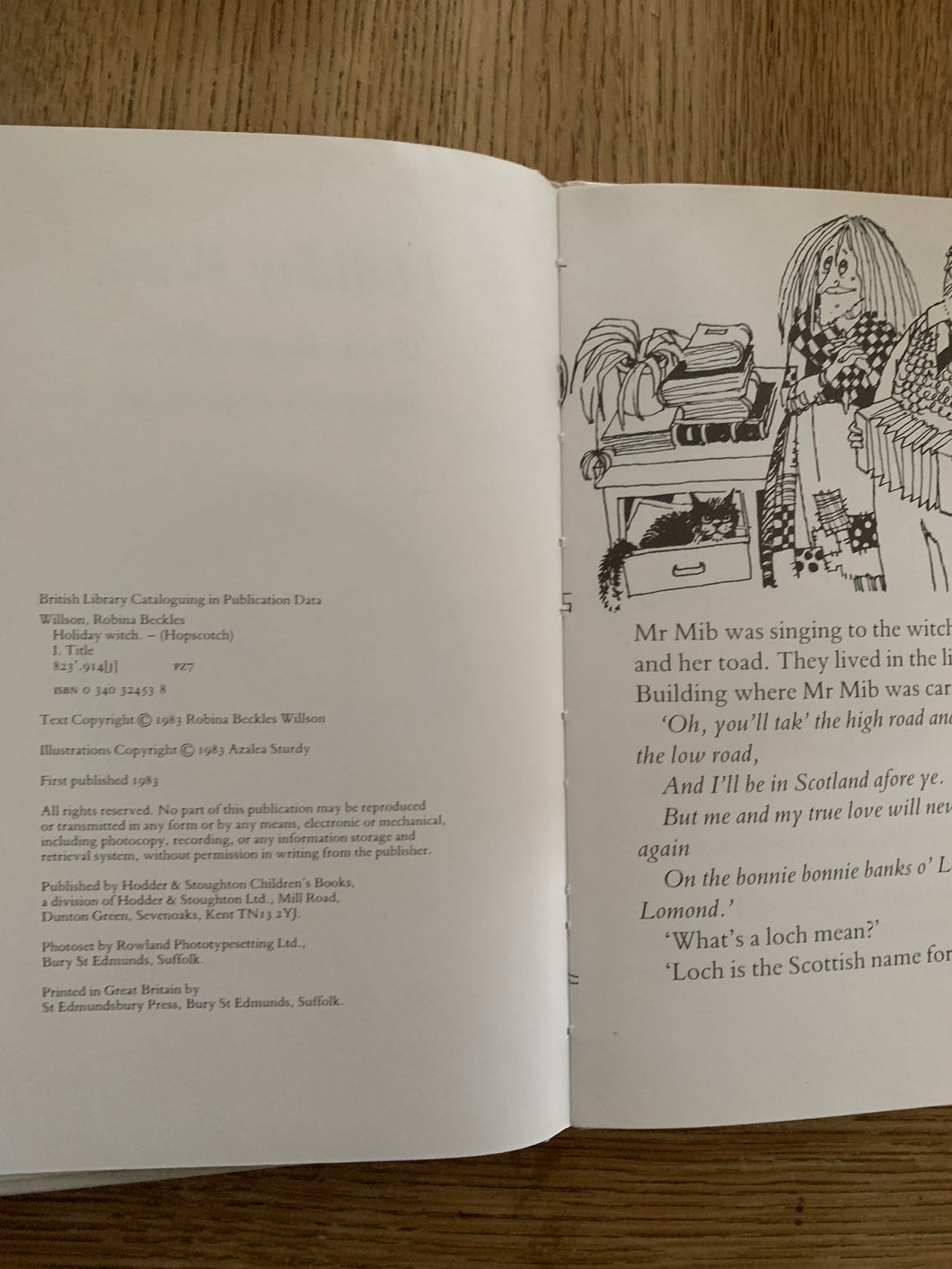 ‘Holiday Witch’ by Robina Beckles Willson. Illustrated by Azalea Sturdy. Published by Hodder & Stoughton. 1983. UK 1st edition. Laminated pictorial boards with no dust wrapper as issued.