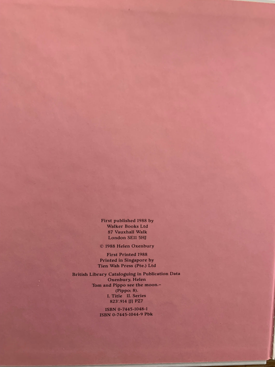 ’Tom and Pippo See the Moon: Pippo number 8’ written and illustrated by Helen Oxenbury. Published by Walker Books. 1989. UK 1st edition. Laminated pictorial boards. No dust wrapper as issued.